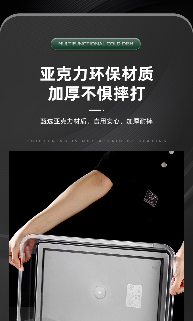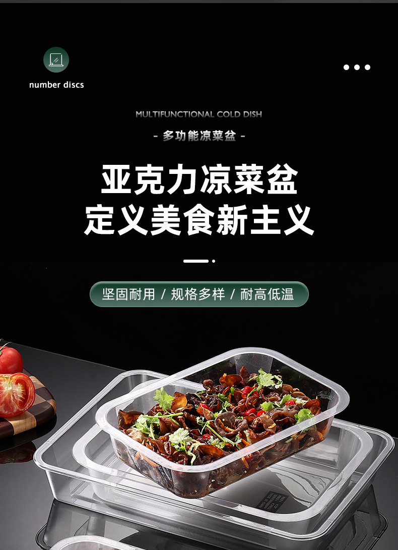 아크릴 투명 매운 야채 콜드 디시 디스플레이 트레이 상업용 조리 식품 트레이 플라스틱 상자 플랫 트레이 직사각형 사각형 트레이