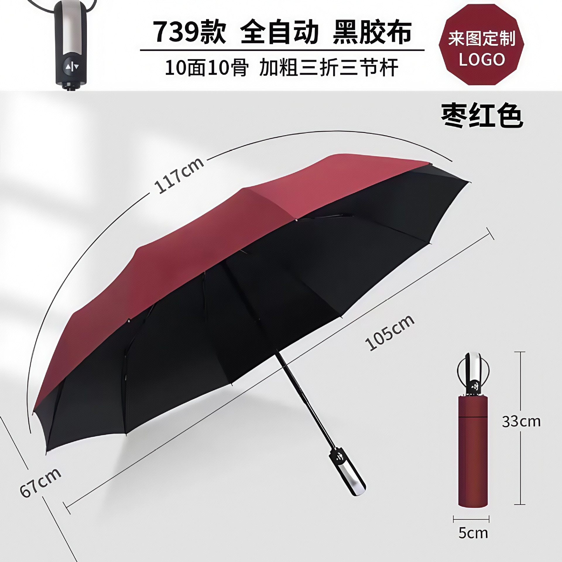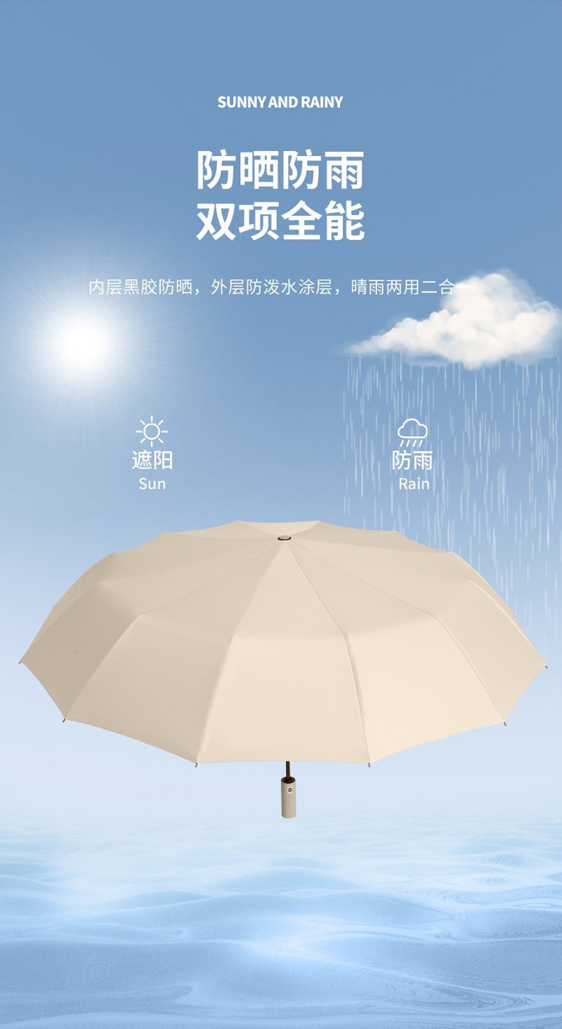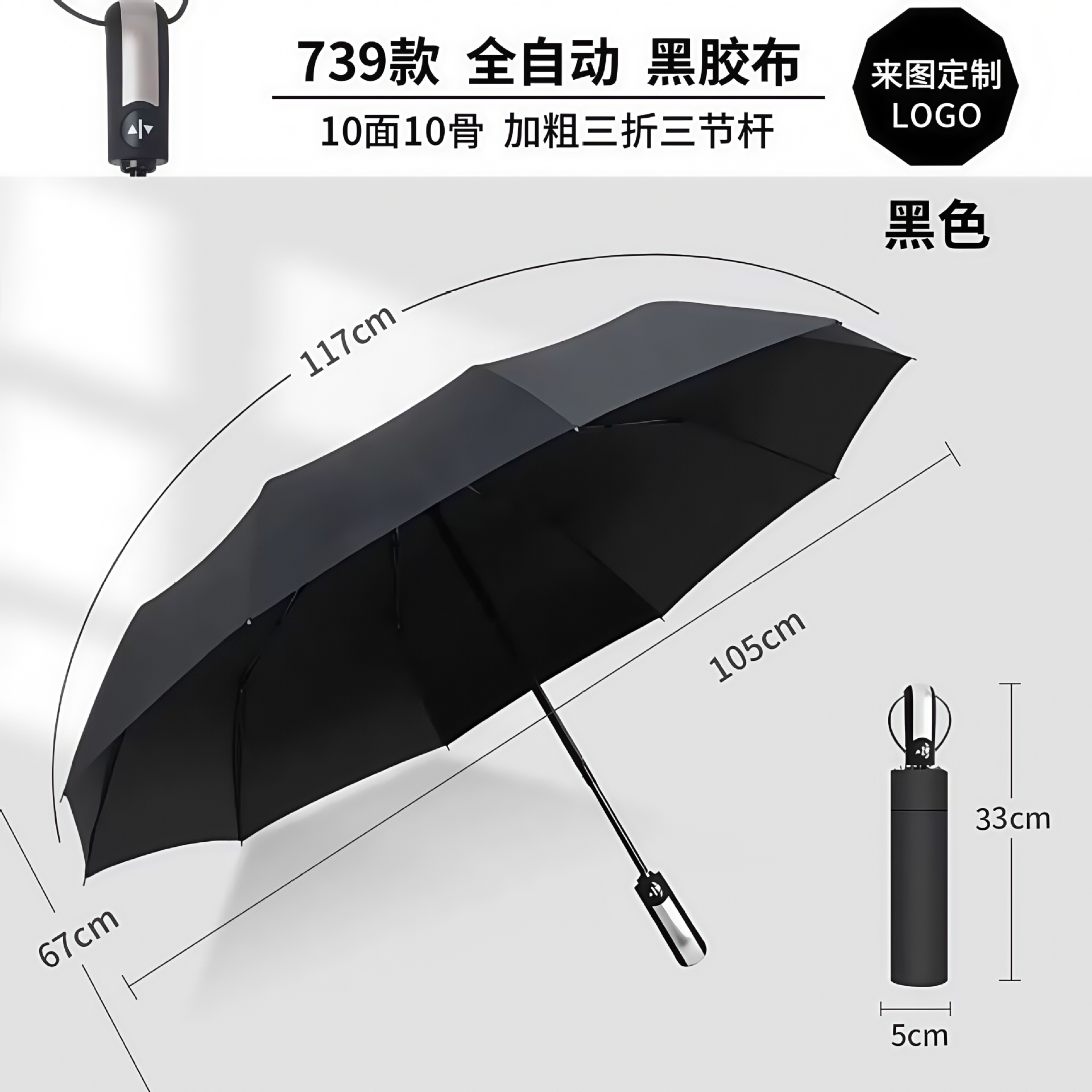 10 뼈 자동 우산 검은 고무 선 스크린 우산 접이식 태양 우산 제조 업체 도매 맞춤형 인쇄 로고