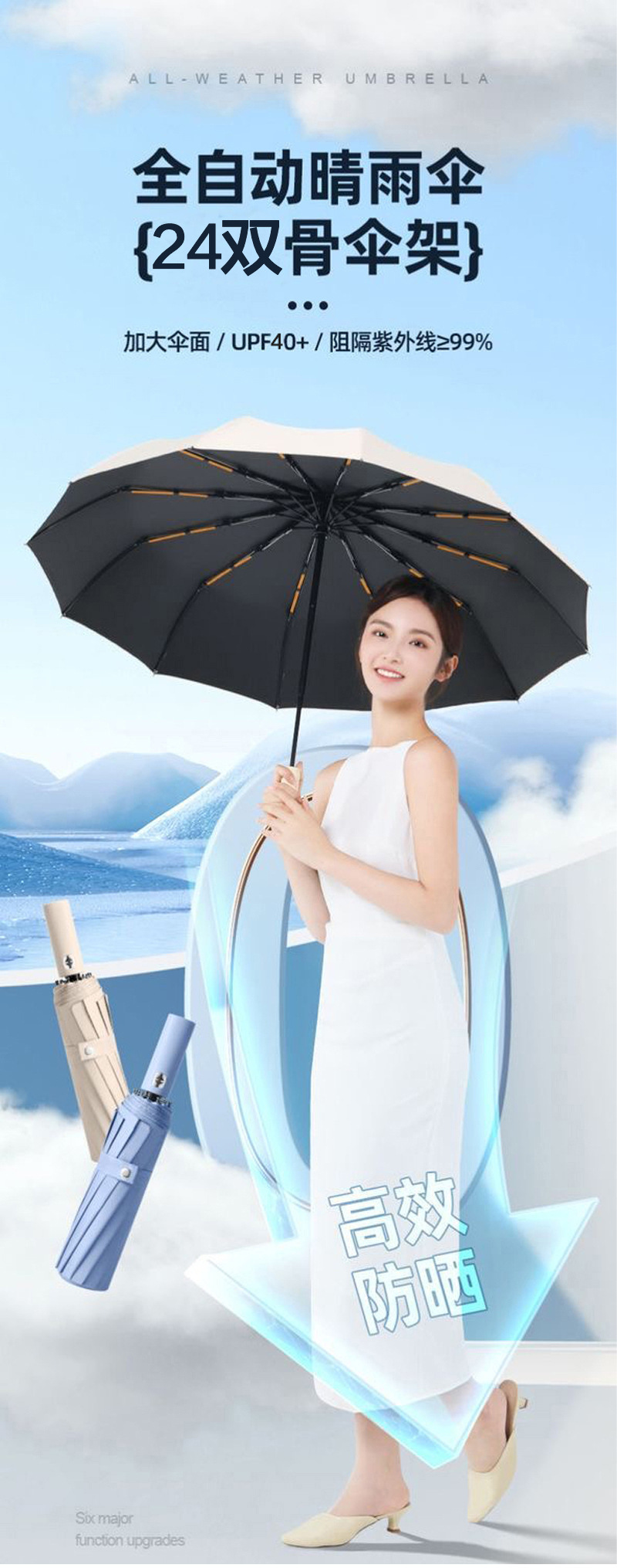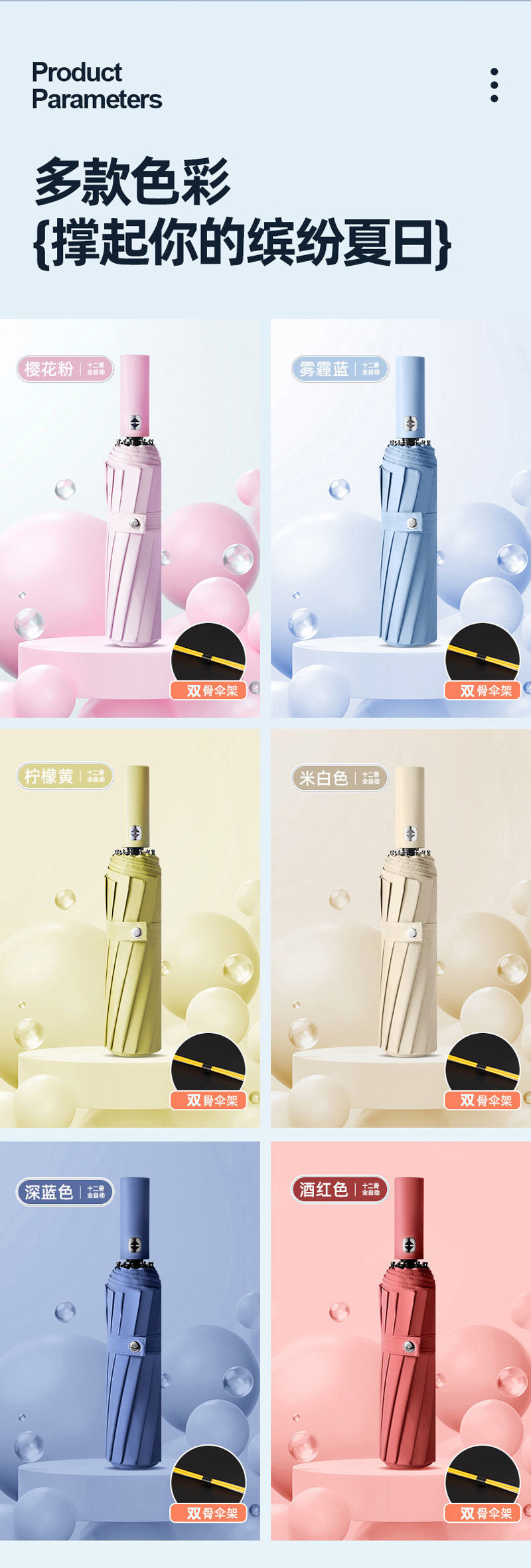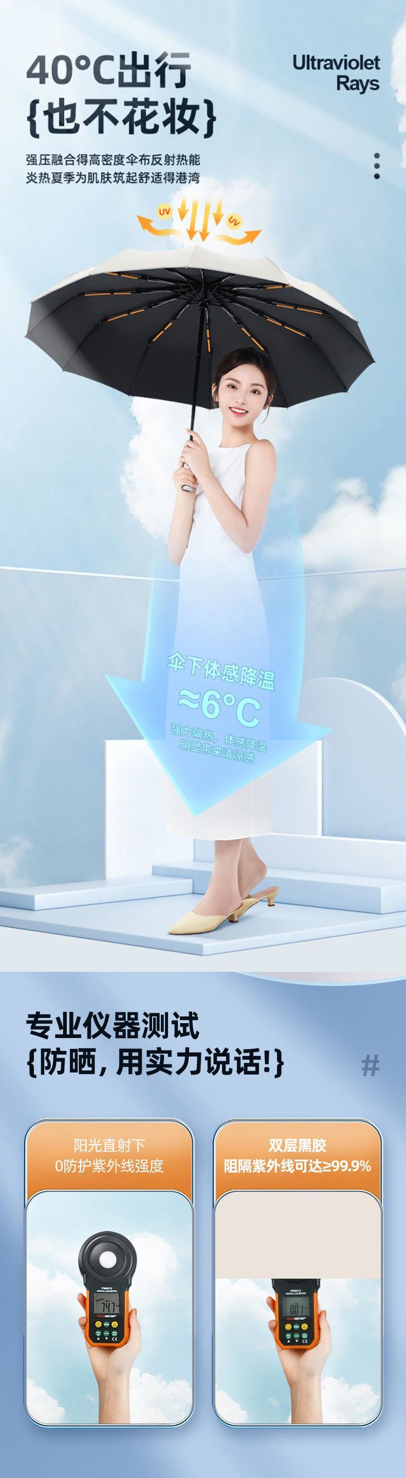 10 뼈 자동 우산 검은 고무 선 스크린 우산 접이식 태양 우산 제조 업체 도매 맞춤형 인쇄 로고