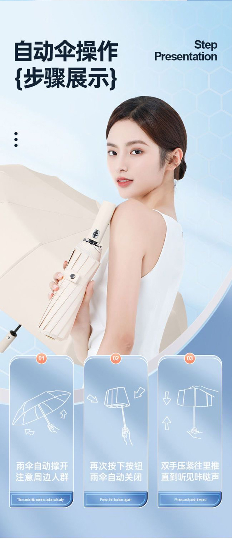 10 뼈 자동 우산 검은 고무 선 스크린 우산 접이식 태양 우산 제조 업체 도매 맞춤형 인쇄 로고스토어 가기