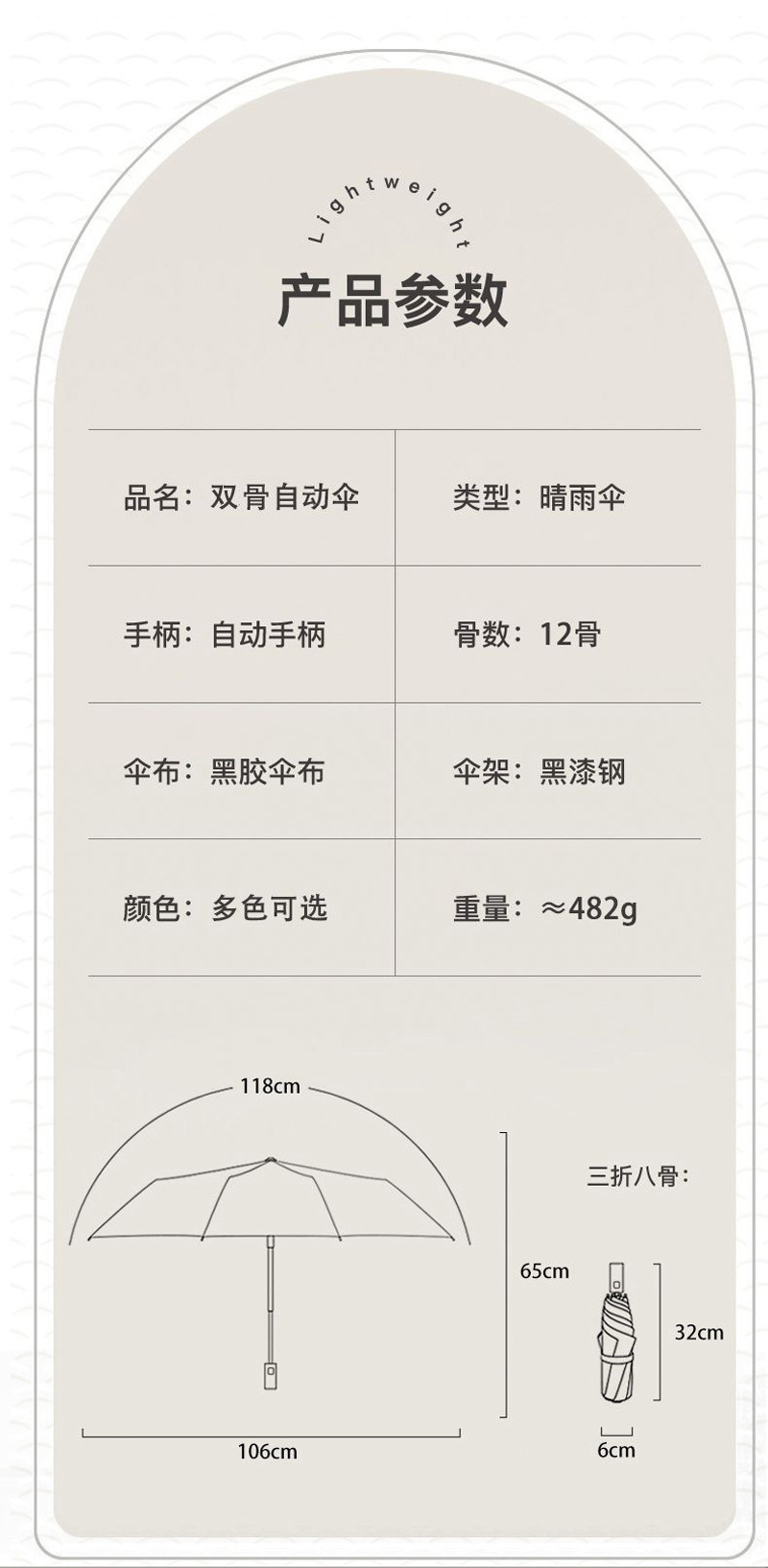 • 수동 8본 솔리드 컬러 비닐 자외선 차단제 블랙
