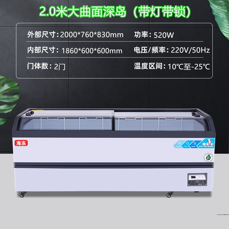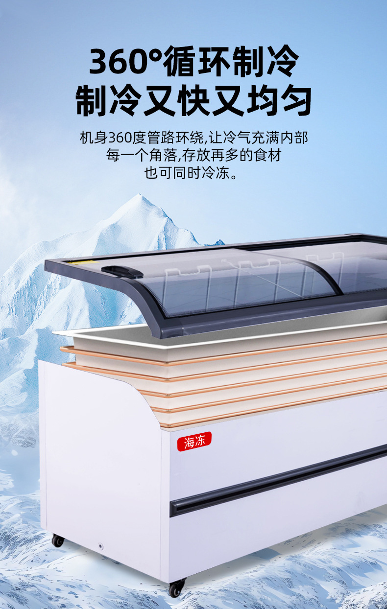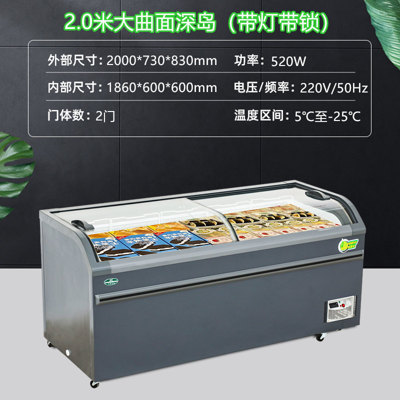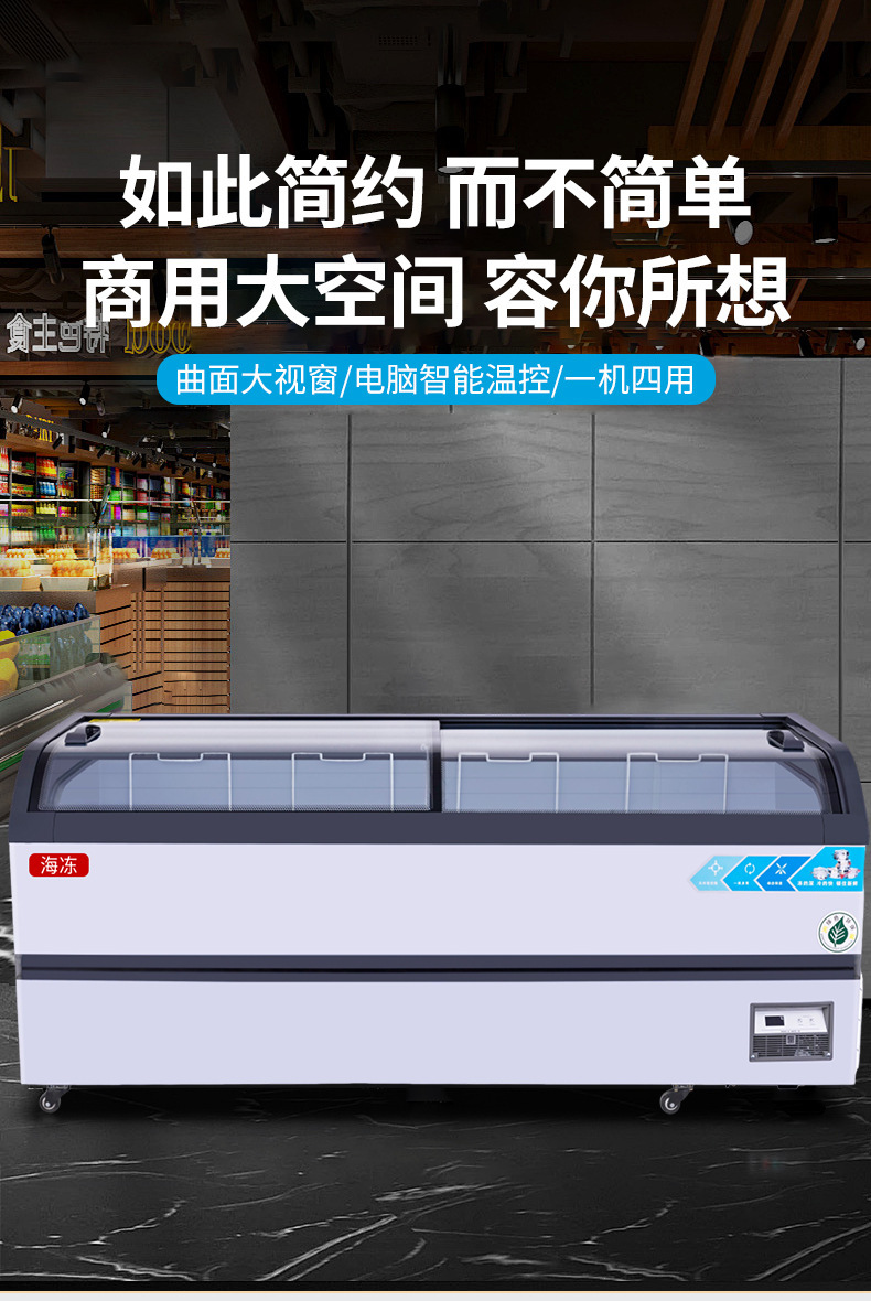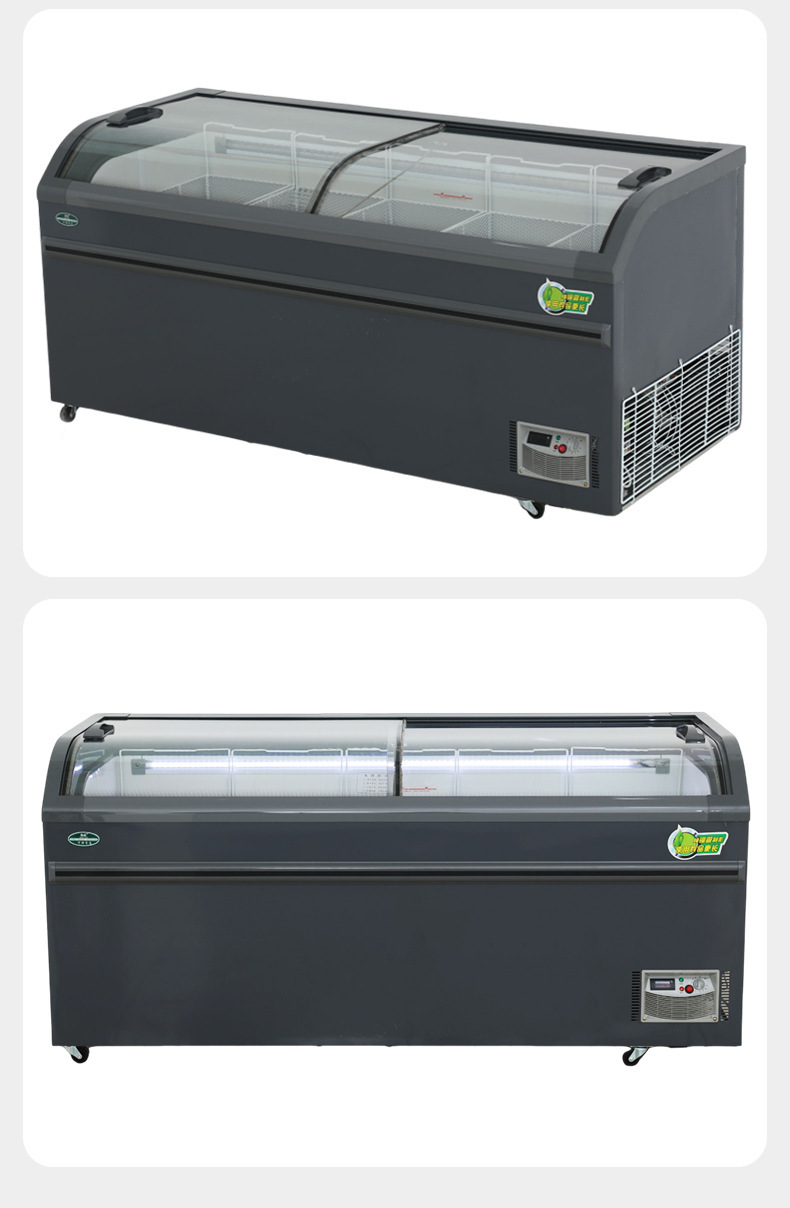 냉동고 상업용 디스플레이 캐비닛 대용량 아이스크림 캐비닛 곡선 유리 도어 조합 아일랜드 캐비닛 수평 냉장 냉동고스토어 가기