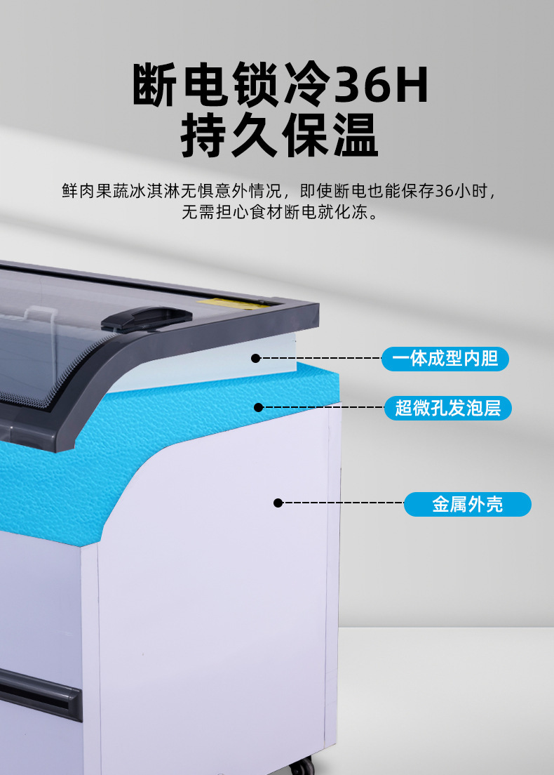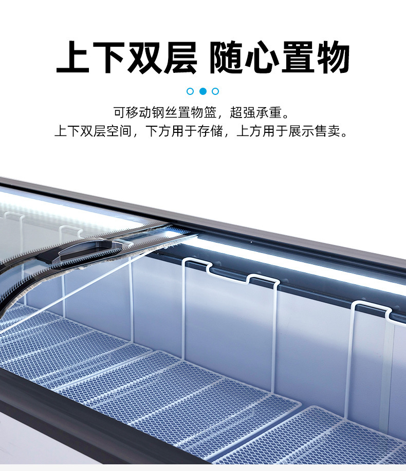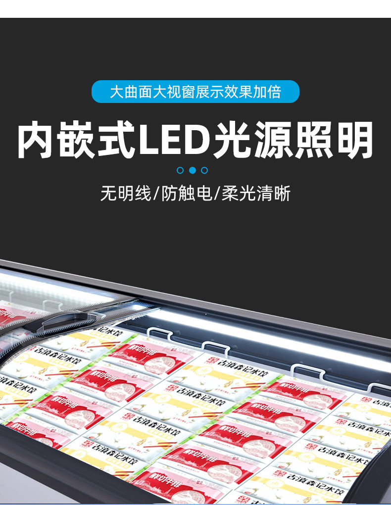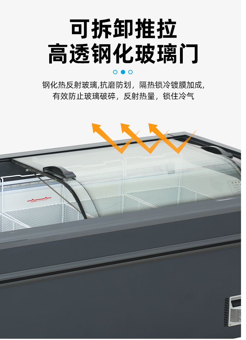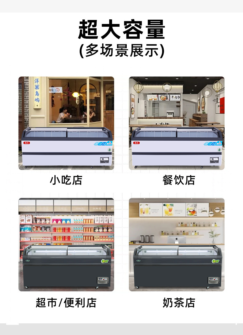 냉동고 상업용 디스플레이 캐비닛 대용량 아이스크림 캐비닛 곡선 유리 도어 조합 아일랜드 캐비닛 수평 냉장 냉동고스토어 가기