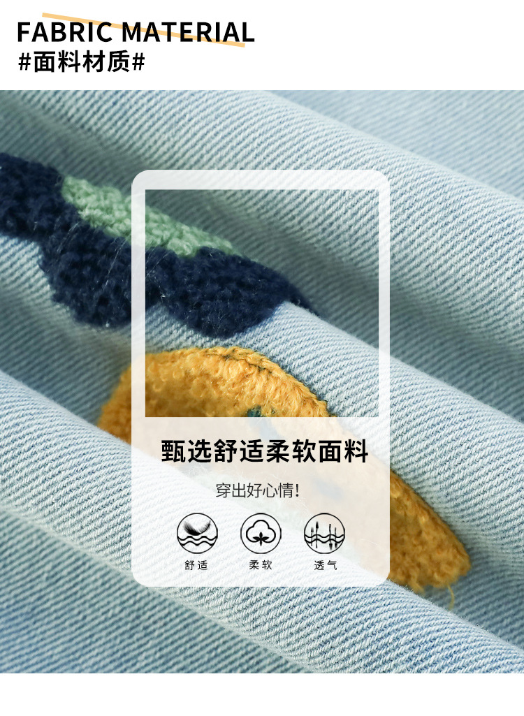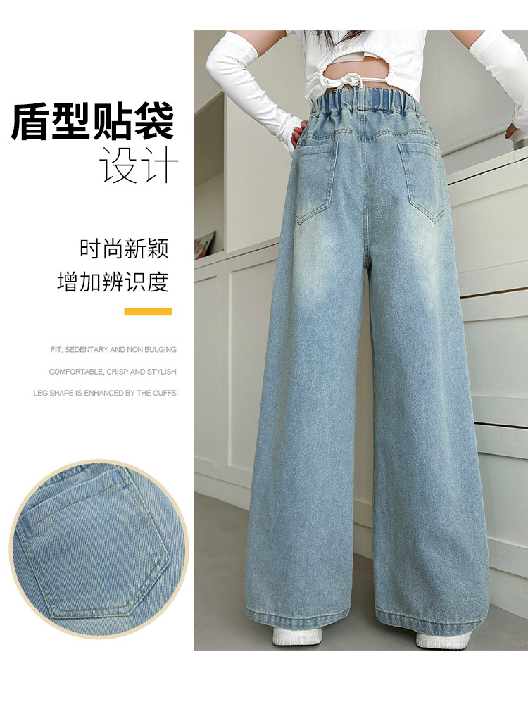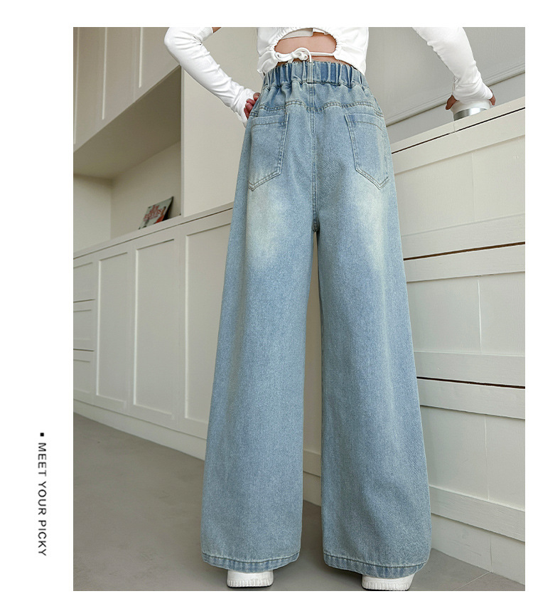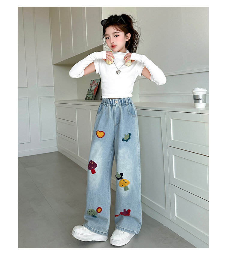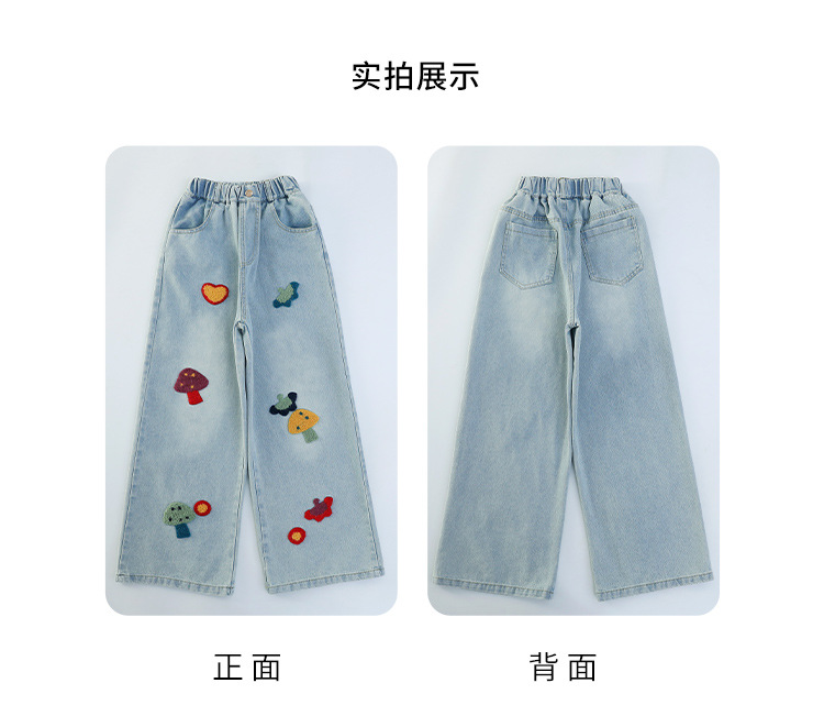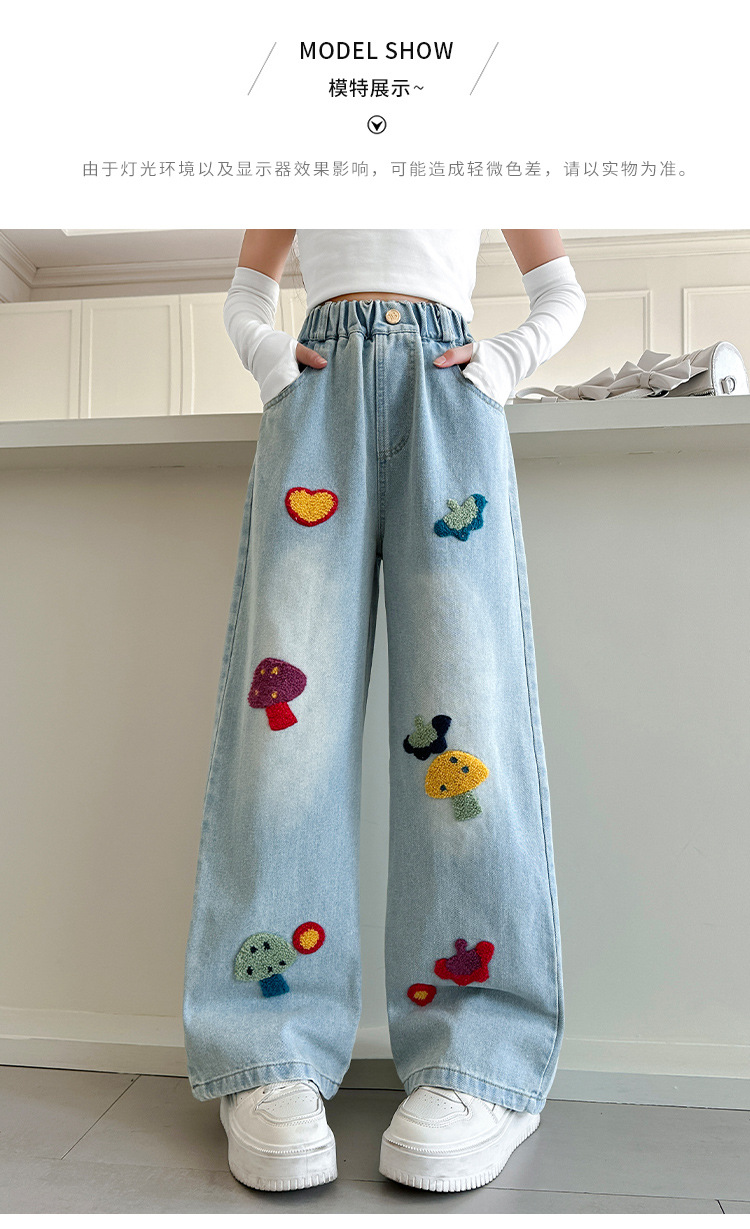 2025 새로운 봄, 가을 느슨한 청바지 한국 스타일 소녀 스트레이트 캐주얼 학생 버섯 수건 수 놓은 와이드 레그 바지