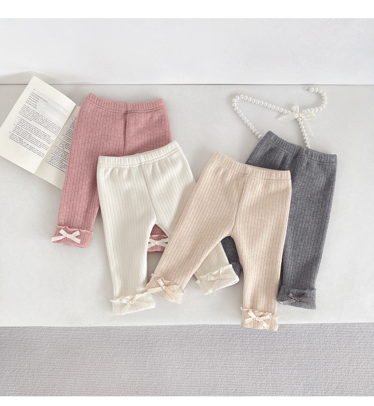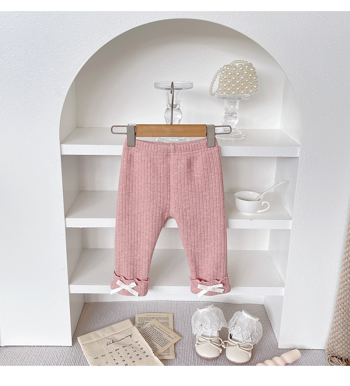 2025 새로운 가을 의류 레깅스 한국 스타일 달콤하고 다재다능한 스타일 1-3 세 아기 소녀 니트 핏 스트립 캐주얼 바지