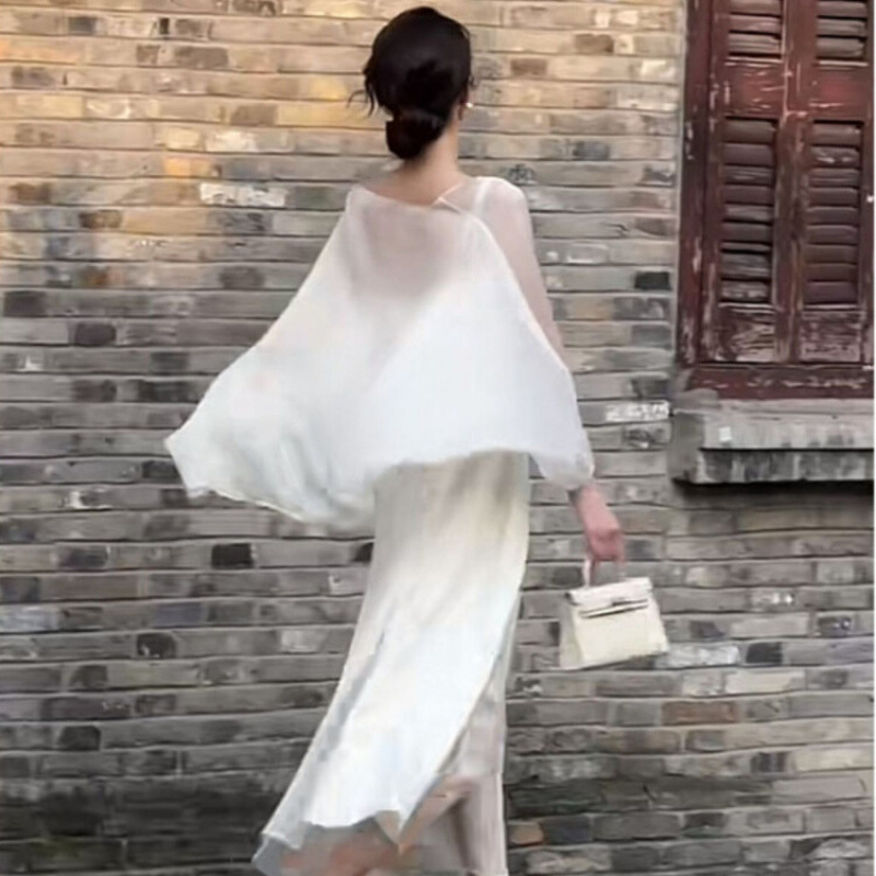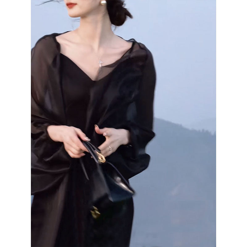 여성용 텐셀 쉬폰 자외선 차단 의류, 여름용 얇은 거즈 가디건, 작은 조끼, 서스펜더 스커트, 숄 에어컨 블라우스스토어 가기