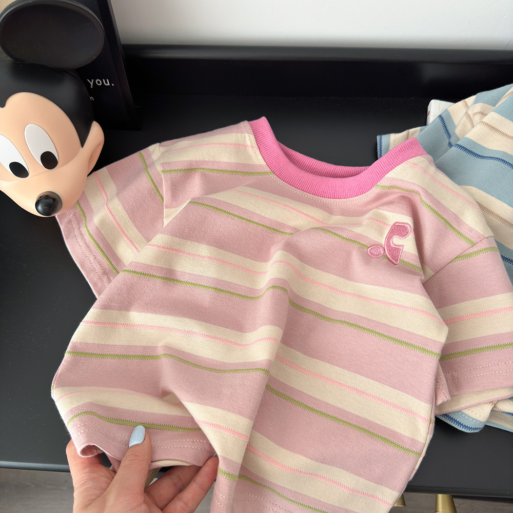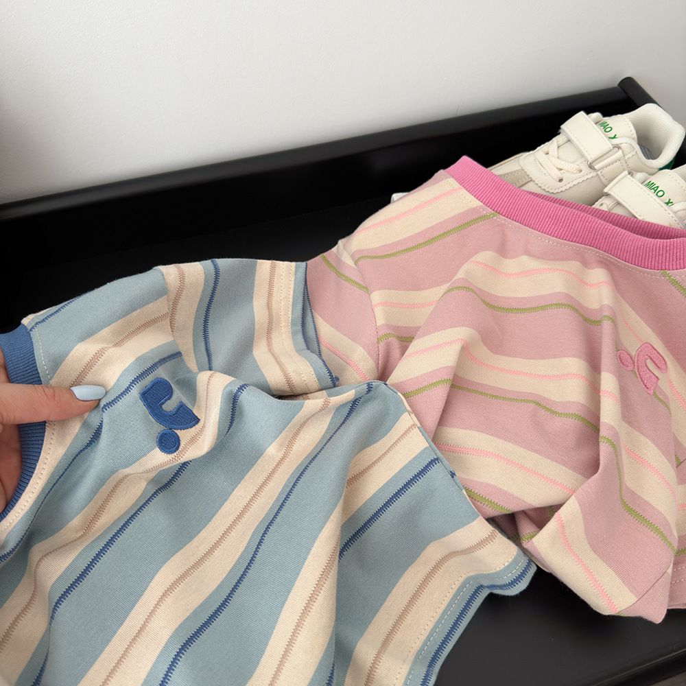 어린이 수놓은 반팔 새 티셔츠 여름 느슨한 한국 톱 올매치 서양식 캐주얼 베이스 셔츠스토어 가기
