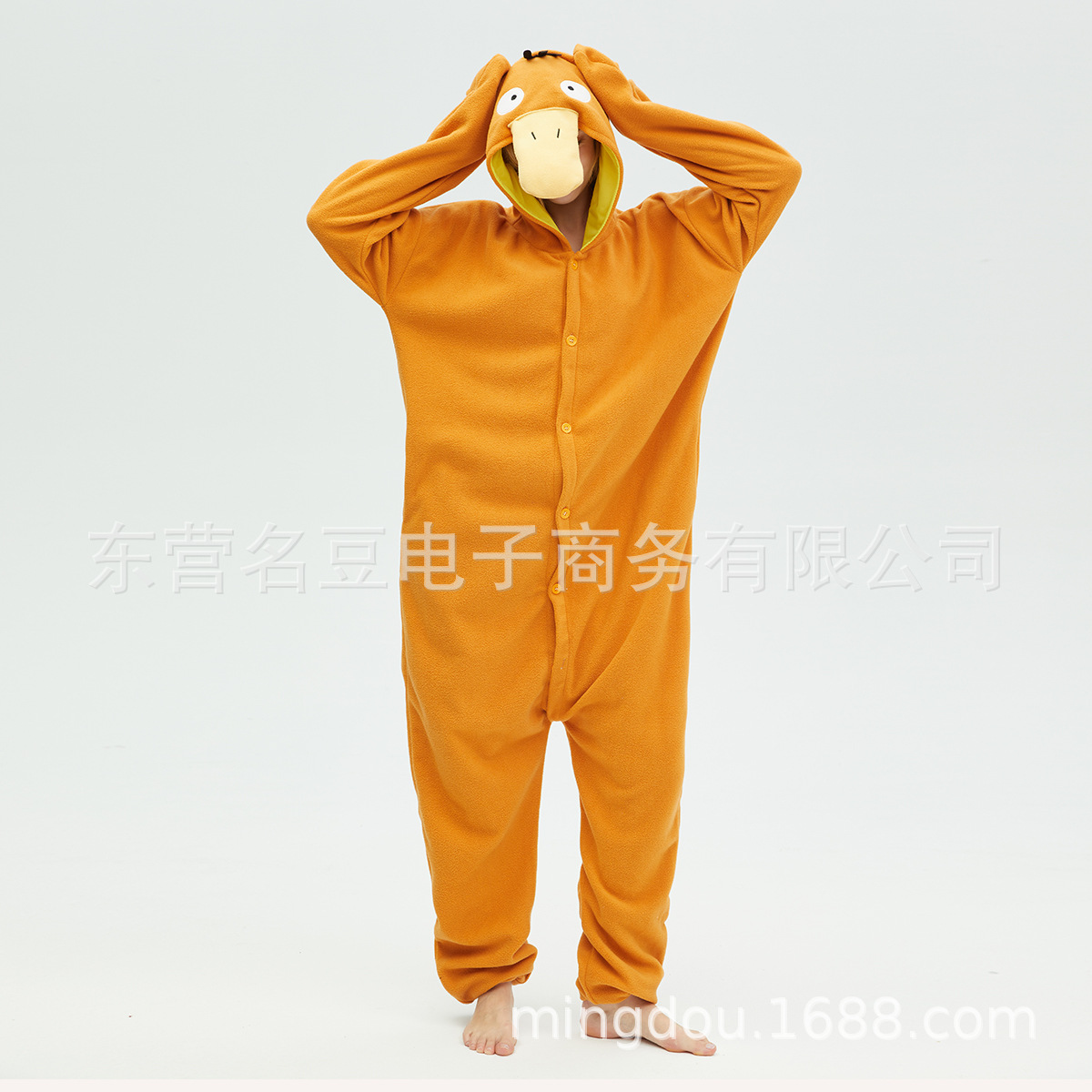대외 무역 인기 스티치 만화 원피스 잠옷 폴라 플리스 상어 긴팔 커플 잠옷 성인 가정복