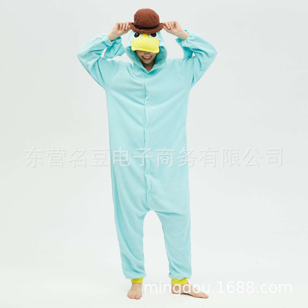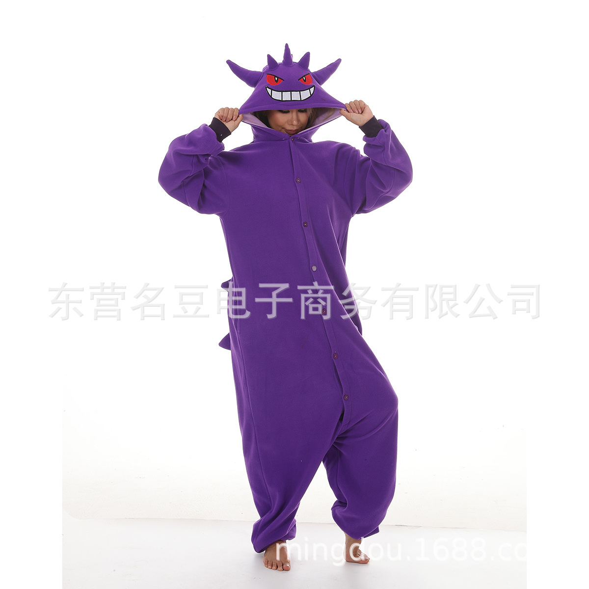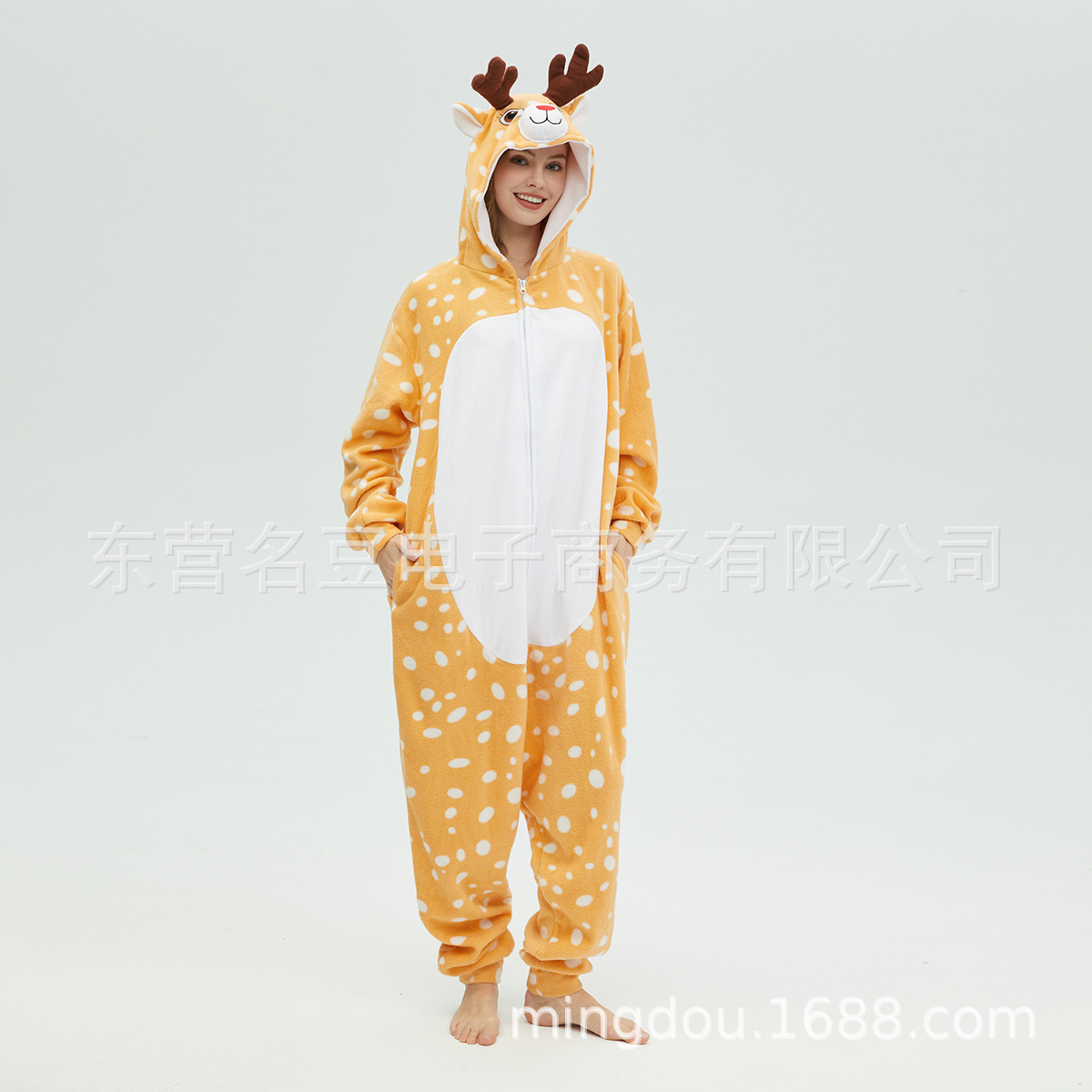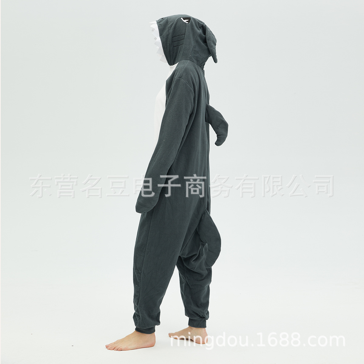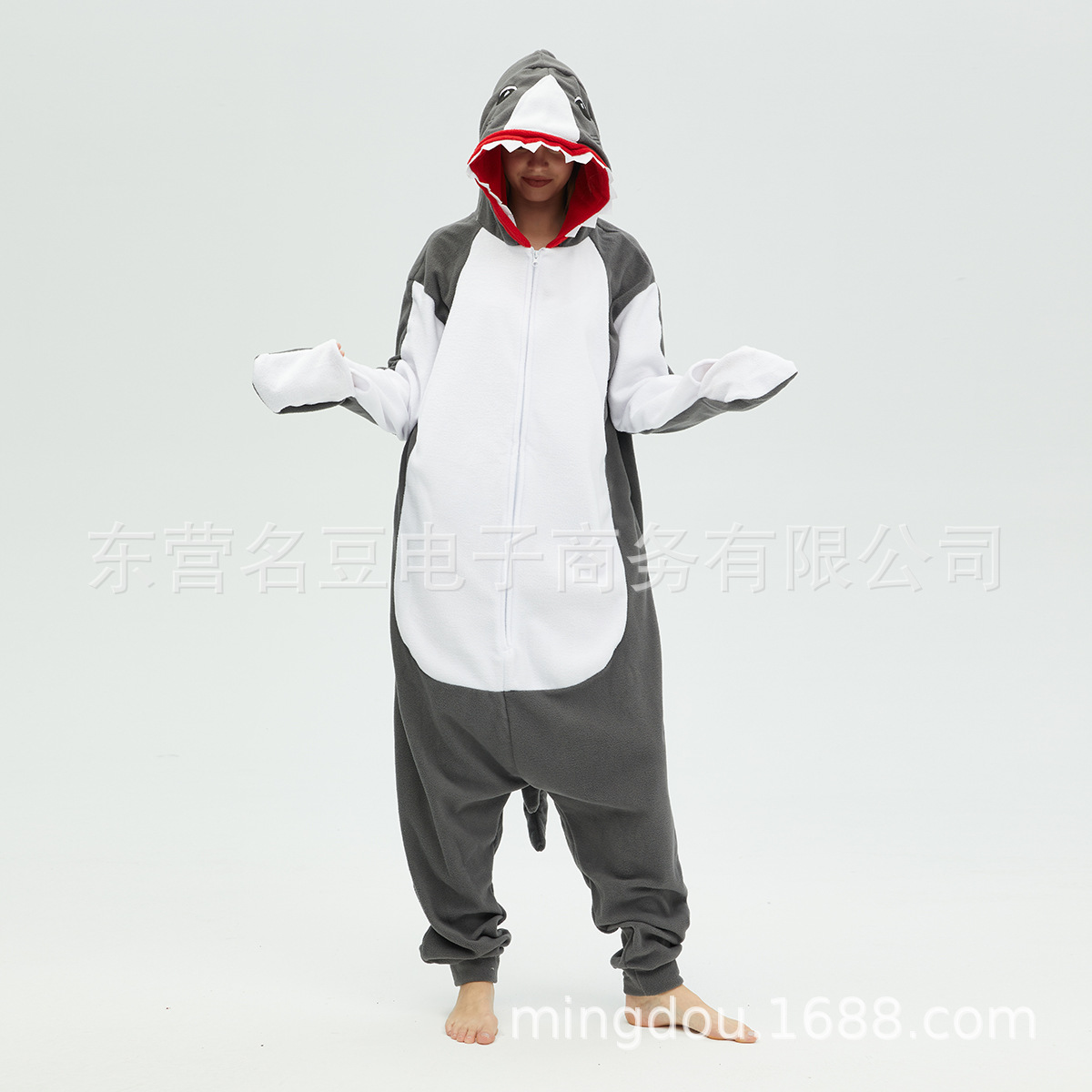 대외 무역 인기 스티치 만화 원피스 잠옷 폴라 플리스 상어 긴팔 커플 잠옷 성인 가정복스토어 가기