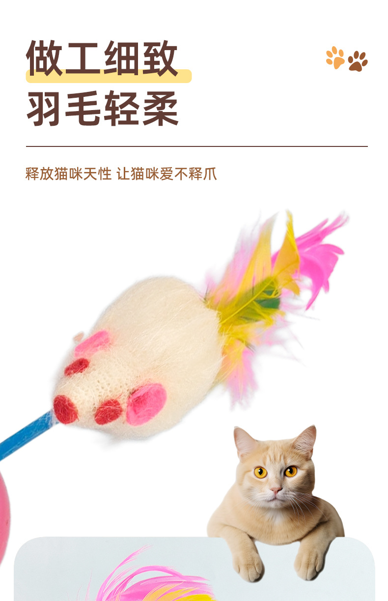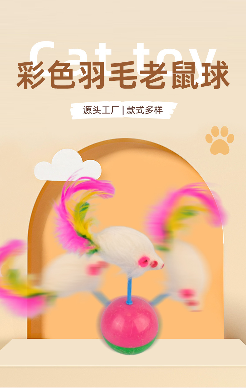 국경을 넘나드는 애완동물 고양이 흔들리는 컬러풀한 깃털 2색 볼 깃털 쥐 셀프 허니 애완동물 고양이 용품스토어 가기