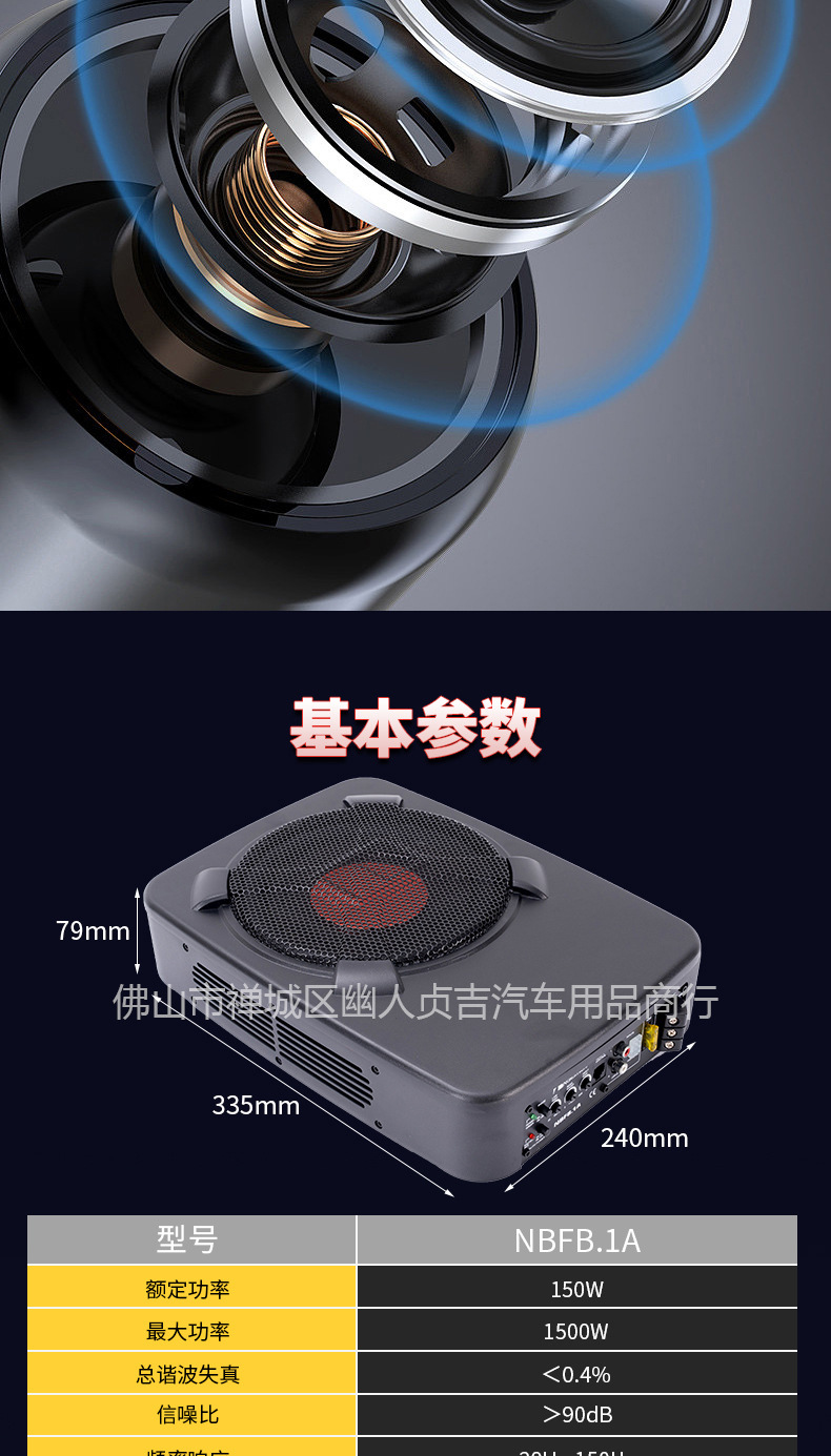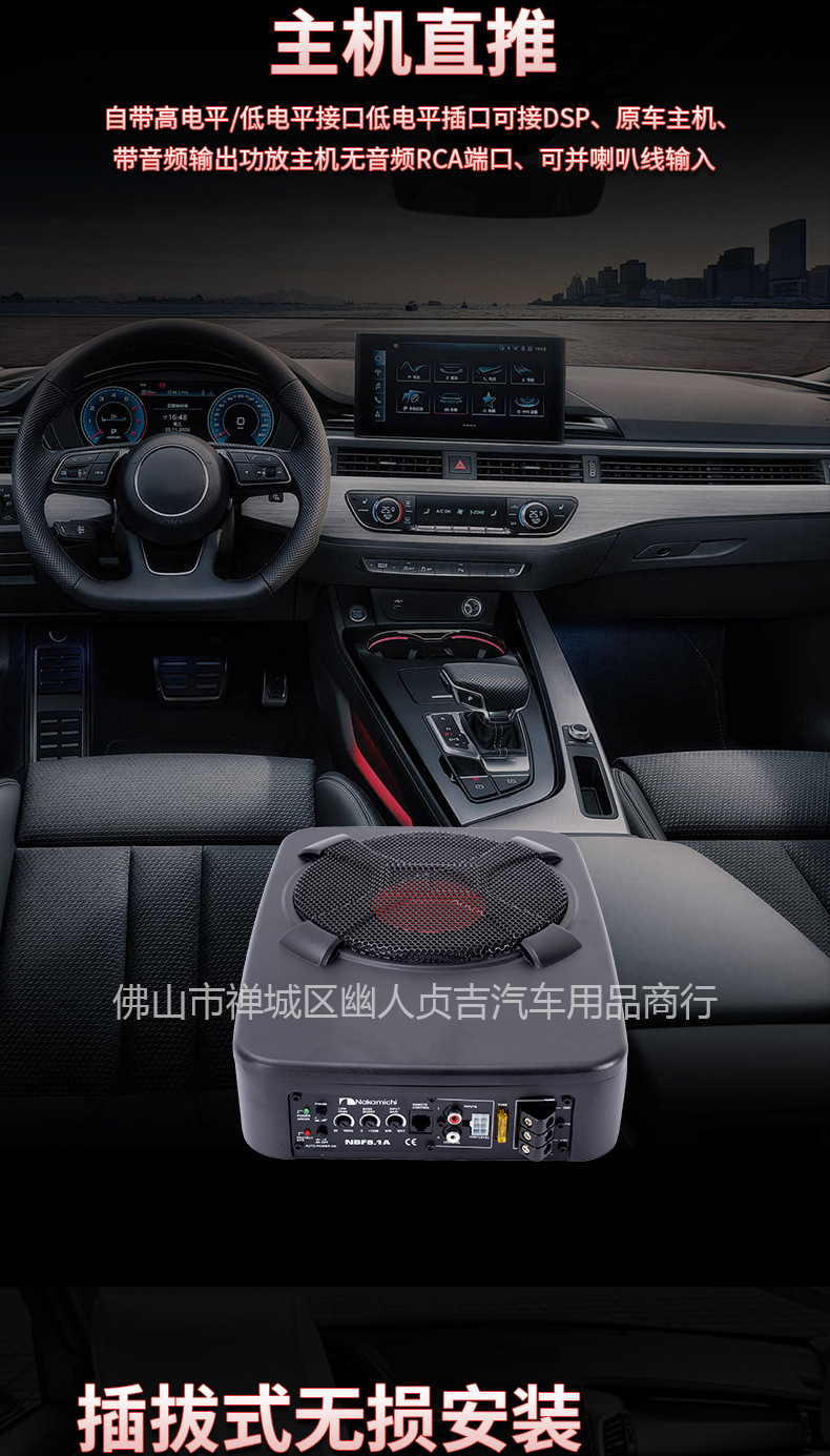 자동차 초박형 서브우퍼 카시트 오디오 수정 8인치 1500W 고출력 자동차 오디오스토어 가기