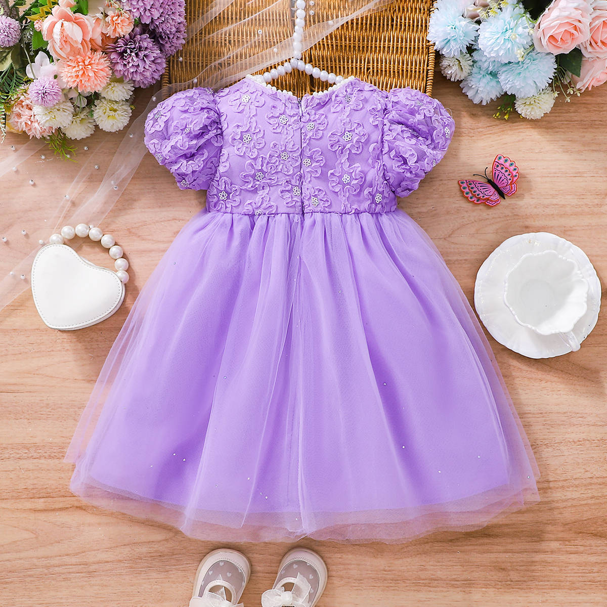 2025 여름 새로운 스타일 어린이 아기 반팔 활 메쉬 핑크 공주 드레스 드레스 요정 드레스