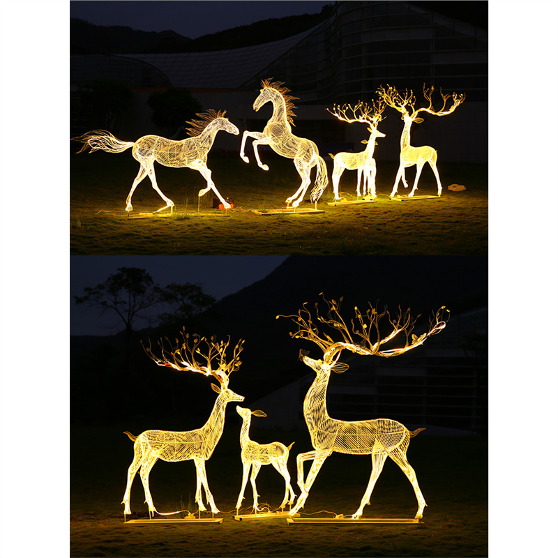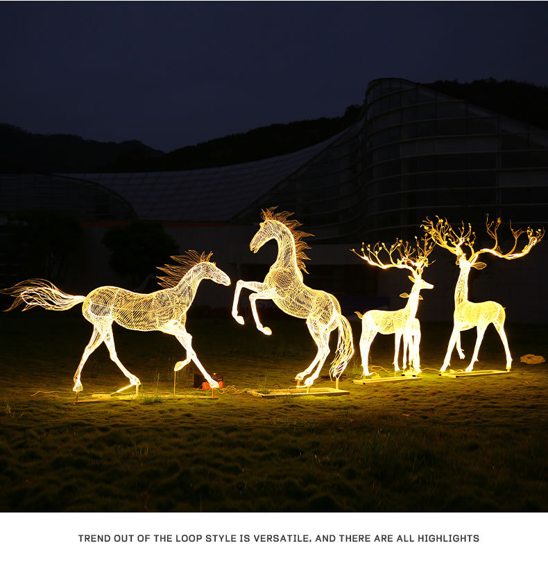 스테인레스 스틸 중공 예술 말 조각 야외 동물 시카 사슴 장식 커뮤니티 빌라 부동산 경치 좋은 지역 대형 장식품스토어 가기