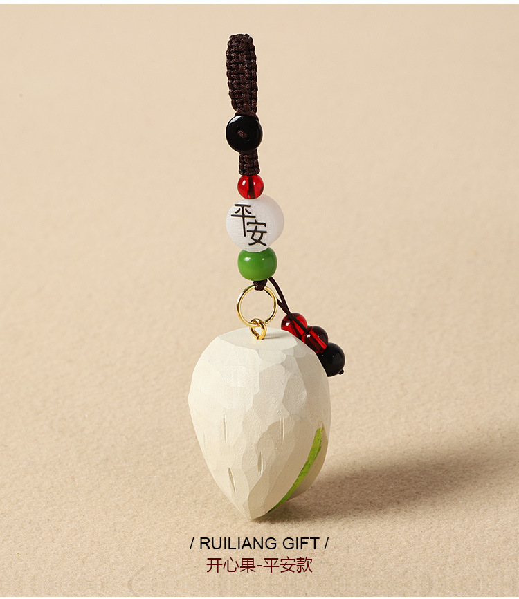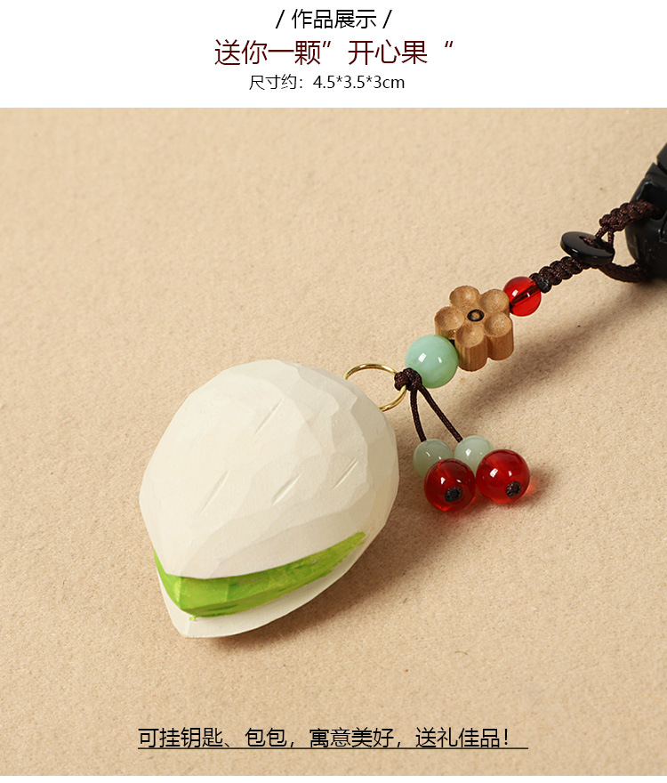 수제 나무 조각 피스타치오 자동차 키 체인 펜던트, 창의적이고 귀여운 단단한 나무 펜던트, 학급 친구를 위한 책가방 펜던트
