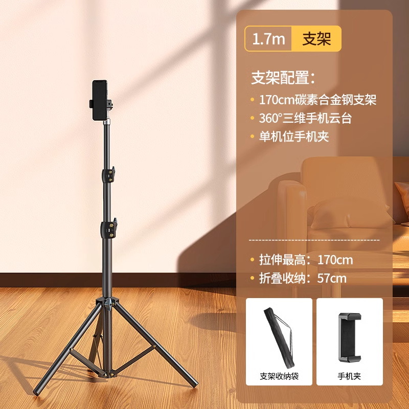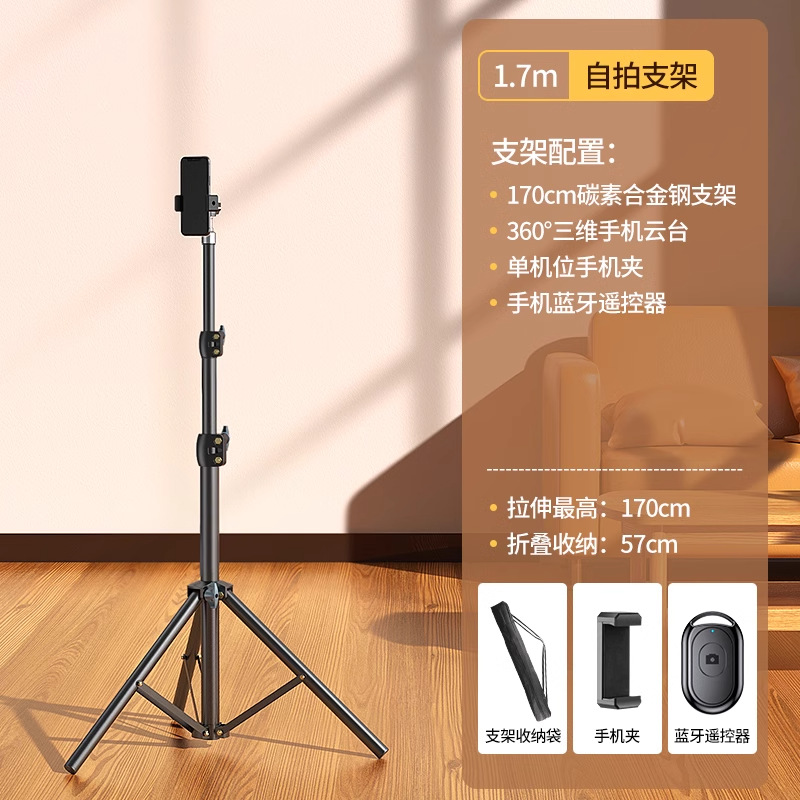 • 1.7m [업그레이드된 탄소강 *불안정 보장] 싱글 카메라 + 수납가방 *Douyin 리모컨.