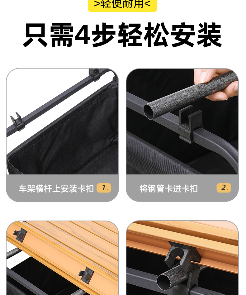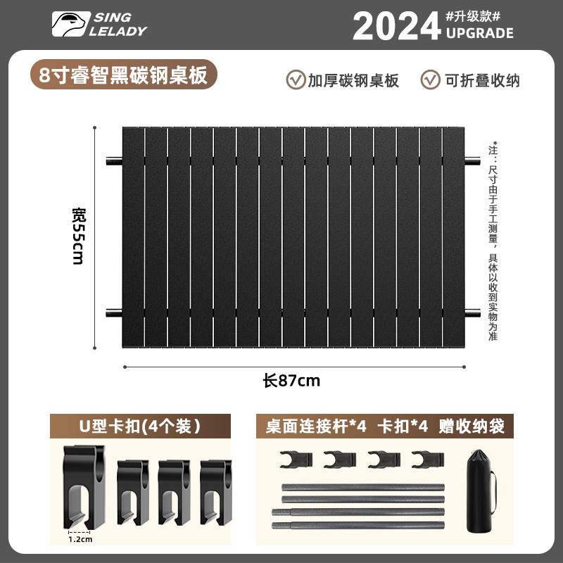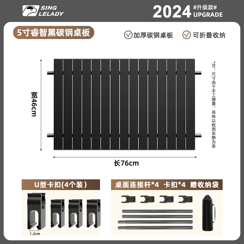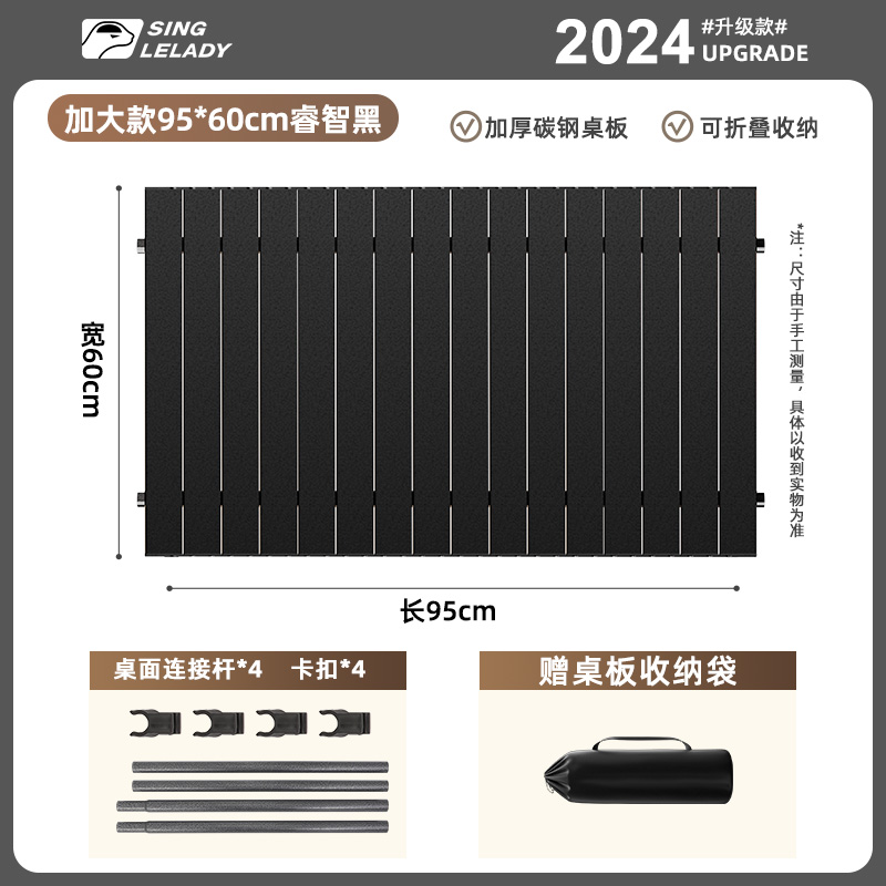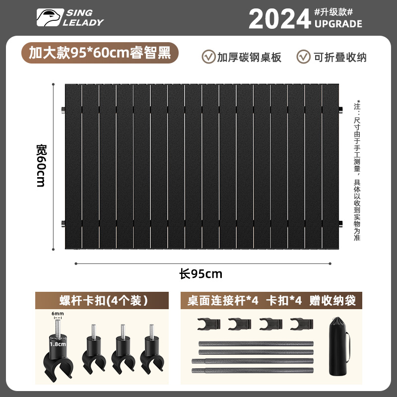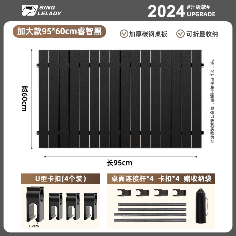 • 초대형 95*60cm 스마트 블랙 탄소강 테이블 + U자형 버클(4개)
