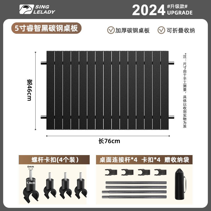 • 초대형 95*60cm 스마트 블랙 탄소강 테이블 + 나사 6mm 버클(4개 팩)
