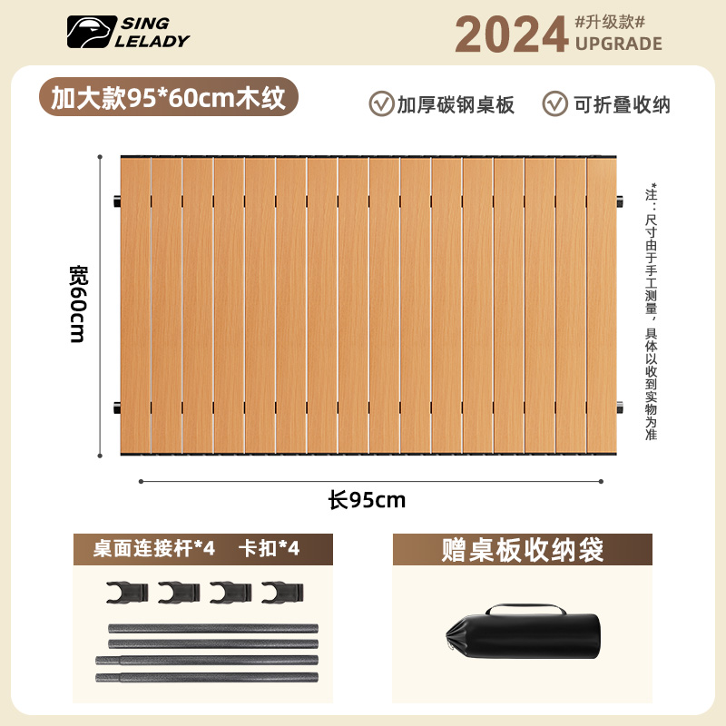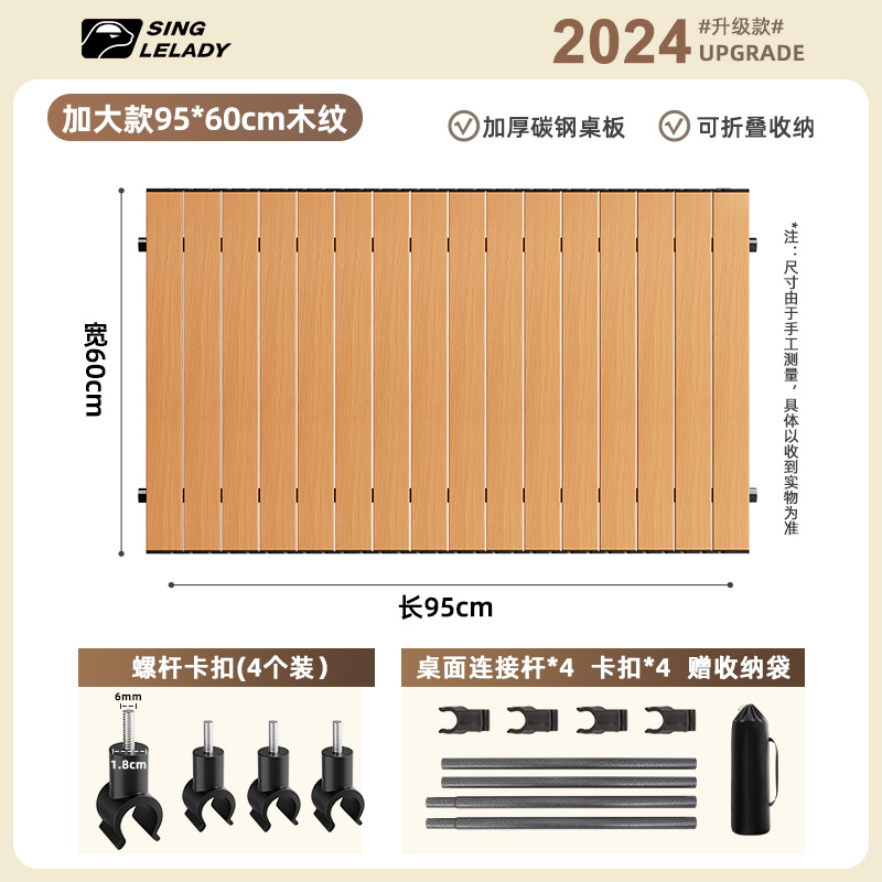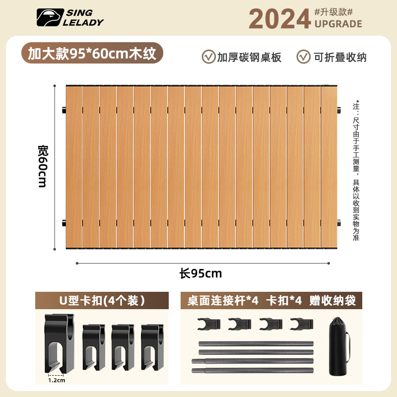 • 초대형 95*60cm 나뭇결 탄소강 테이블 + U자형 버클(4개)
