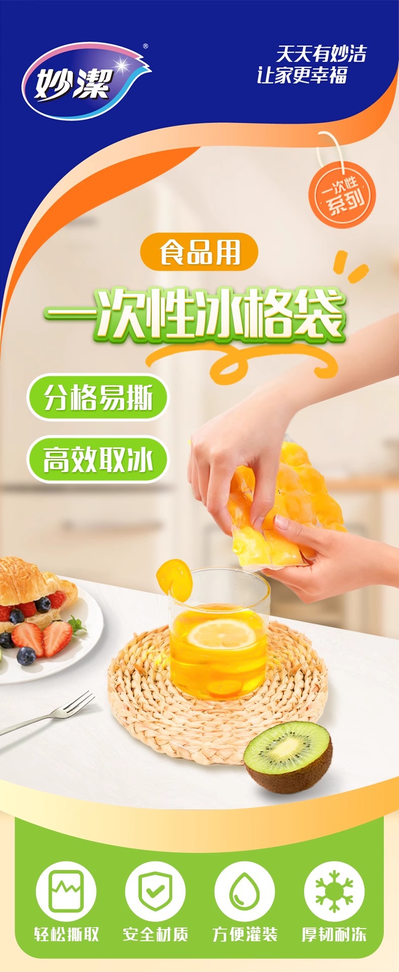 Miaojie 일회용 얼음 가방 자체 밀봉 얼음 트레이 가방 가정용 밀봉 작은 얼음 상자 냉동 아이스 큐브 금형 도매