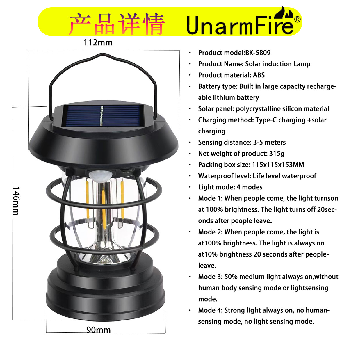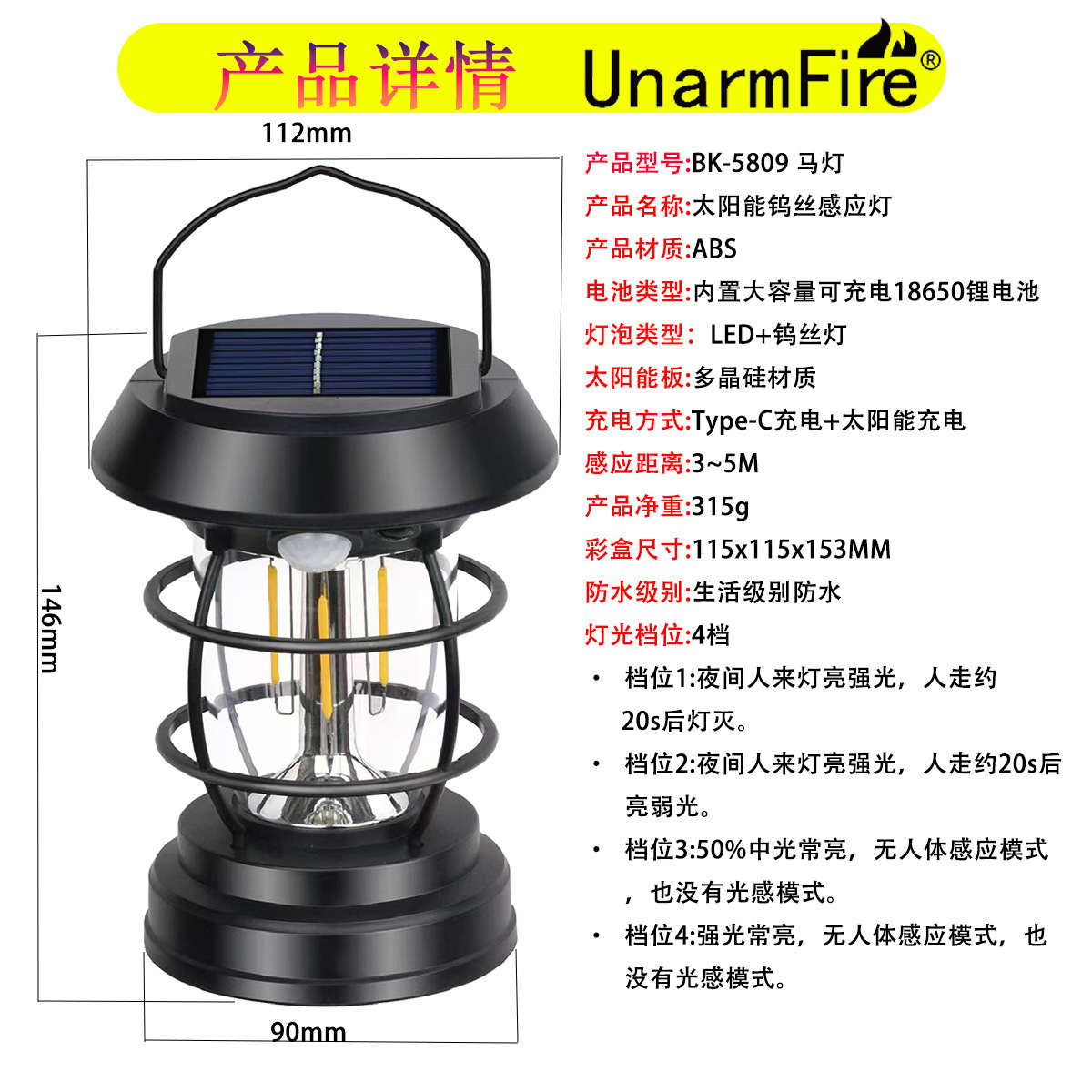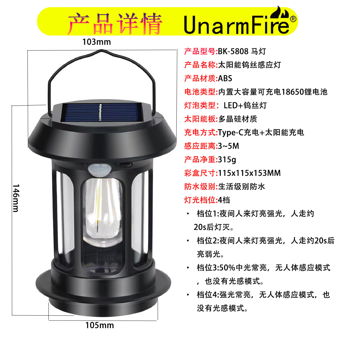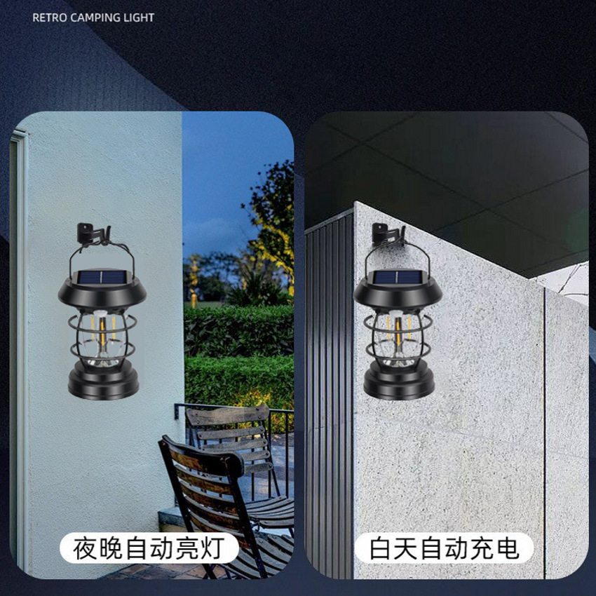 새로운 야외 태양 센서 빛 홈 방수 정원 빛 텅스텐 발코니 빛 캠핑 조명 충전식 말 랜턴
