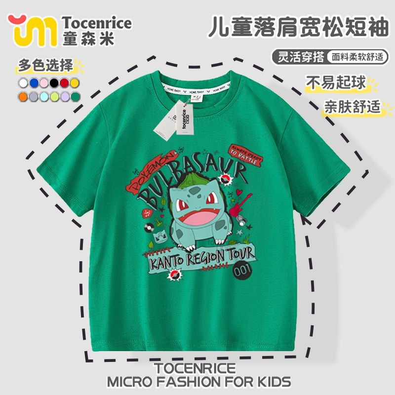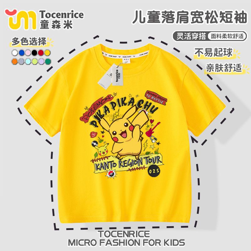 피카츄 Charmander Squirtle Pokémon 공동 브랜드 반팔 티셔츠 남성 및 여성 아동복 학생 베이비 반팔스토어 가기