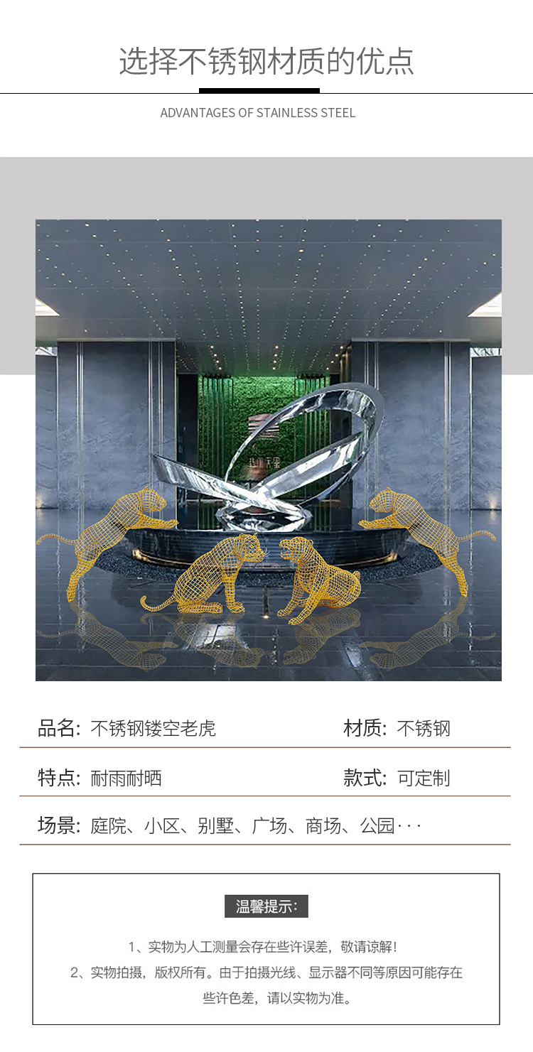야외 스테인리스 중공 호랑이 조각 철공 시뮬레이션 동물 장식품 판매 부서 주거 지역 Meichen 장식