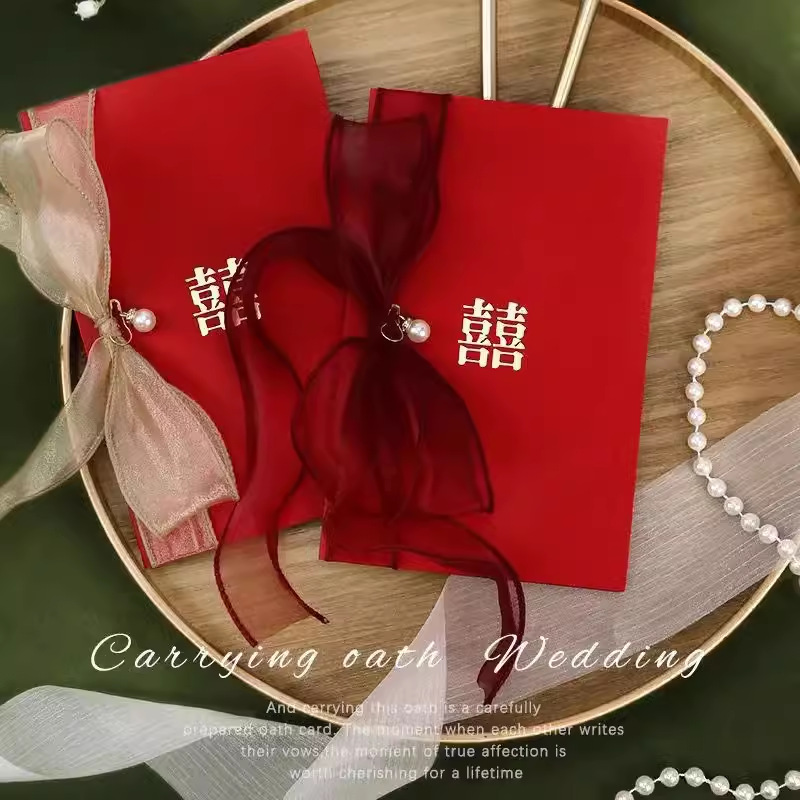용과 까치 빛나는 빨간색 중국 스타일 더블 해피 신랑 결혼식 용품 서약 카드 서약 카드 연설 카드 펜스토어 가기