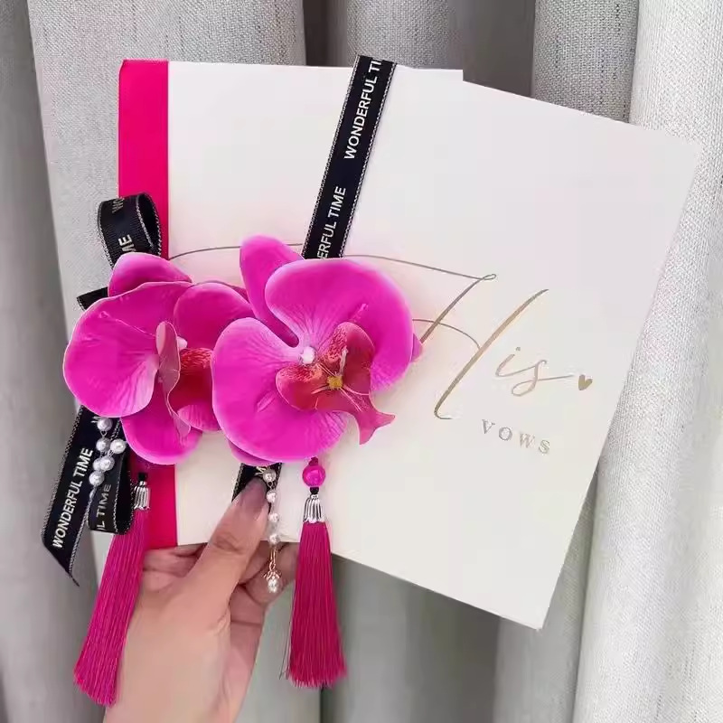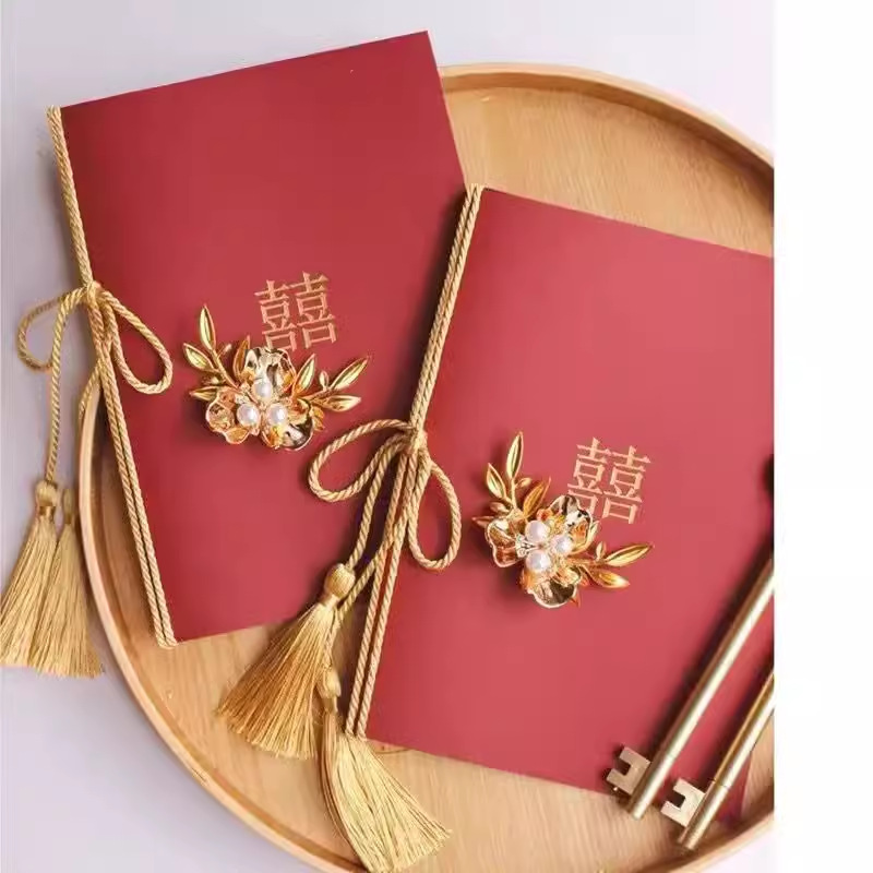 용과 까치 빛나는 빨간색 중국 스타일 더블 해피 신랑 결혼식 용품 서약 카드 서약 카드 연설 카드 펜