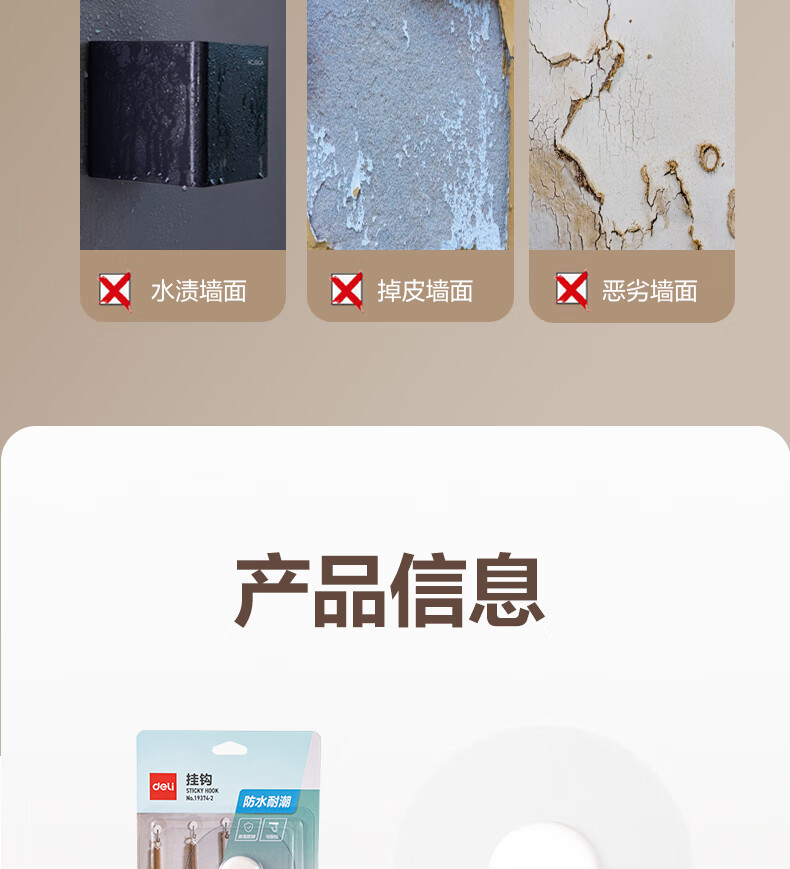 델리 후크 19374-2 정품 후크 2/카드 폼 접착제 투명 후크 머리카락