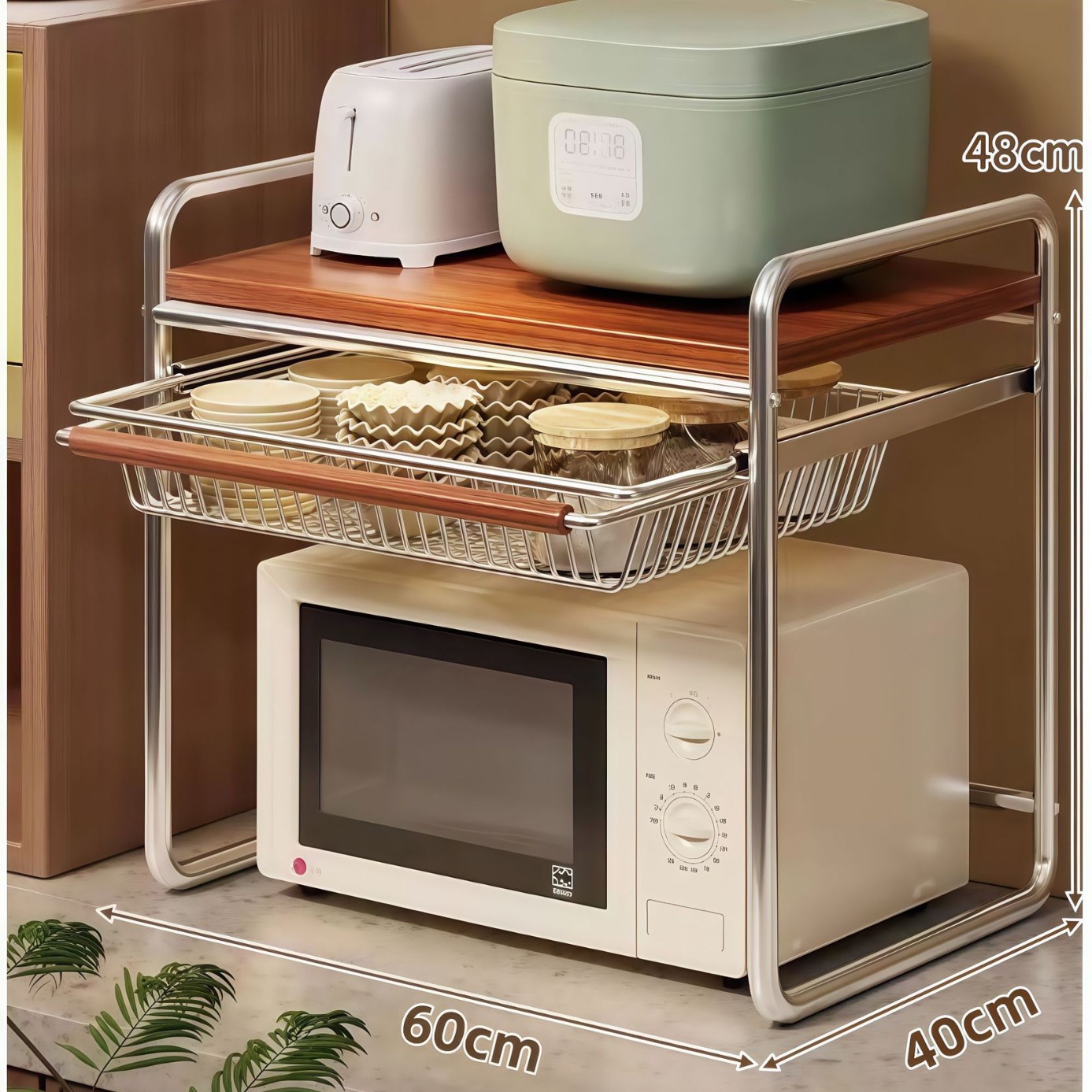 초대형 전자 레인지 보관함 다층 바구니 스타일 홈 주방 보관함 데스크탑 보관함 금속