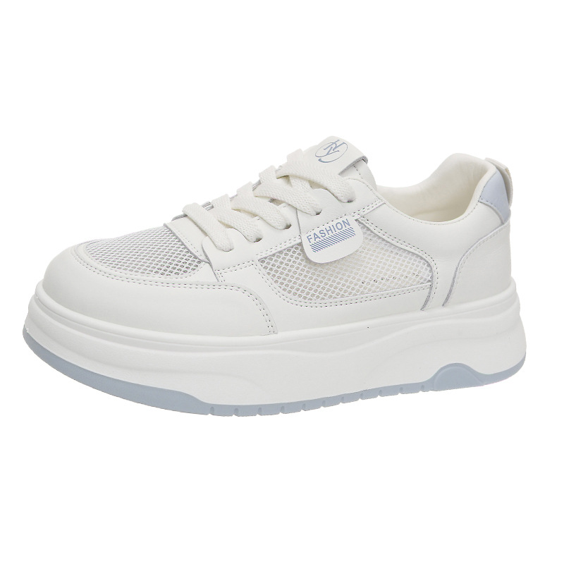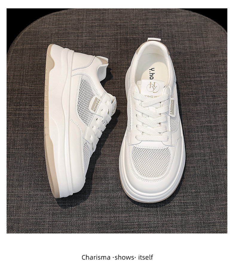 여성을위한 메쉬 캐주얼 스포츠 신발 2025 여름 새로운 통기성 여성 신발 두꺼운 밑창 높이 증가 학생 흰색 신발스토어 가기