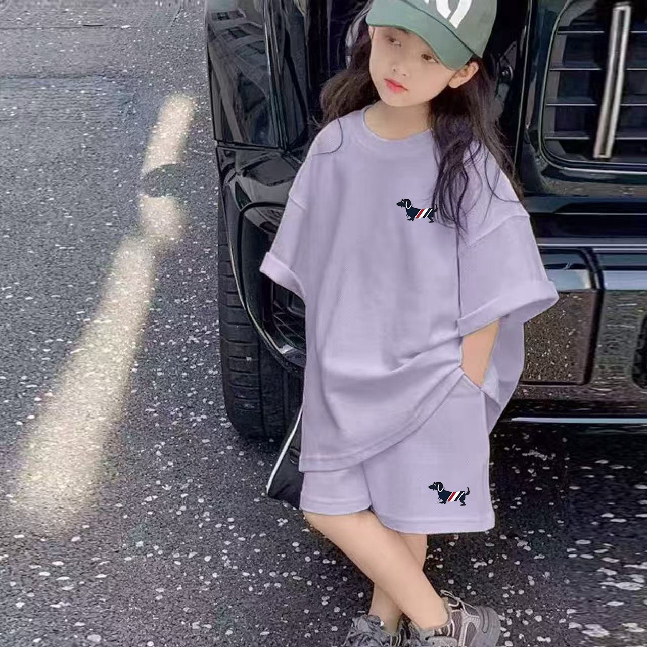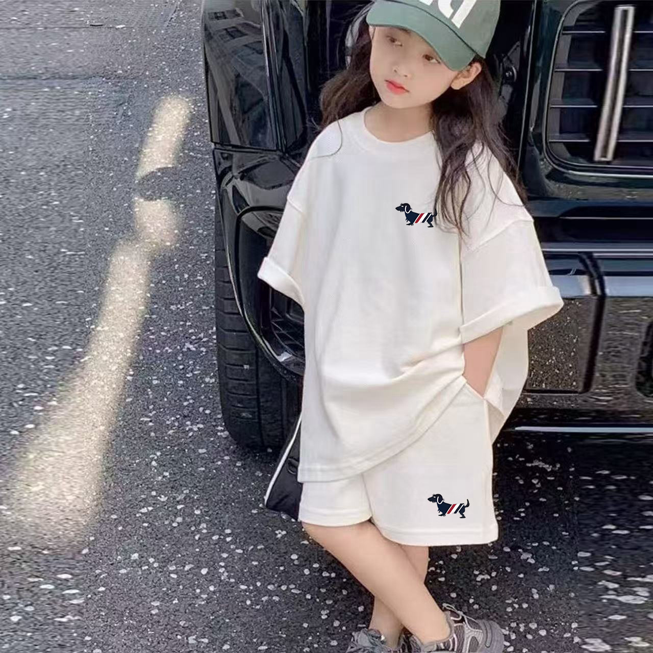 도매 아동복 여름 새 소년 느슨한 편지 짧은 소매 스포츠 세트 어린이 소녀 캐주얼 투피스 세트