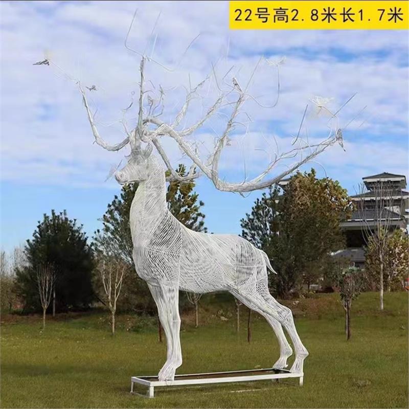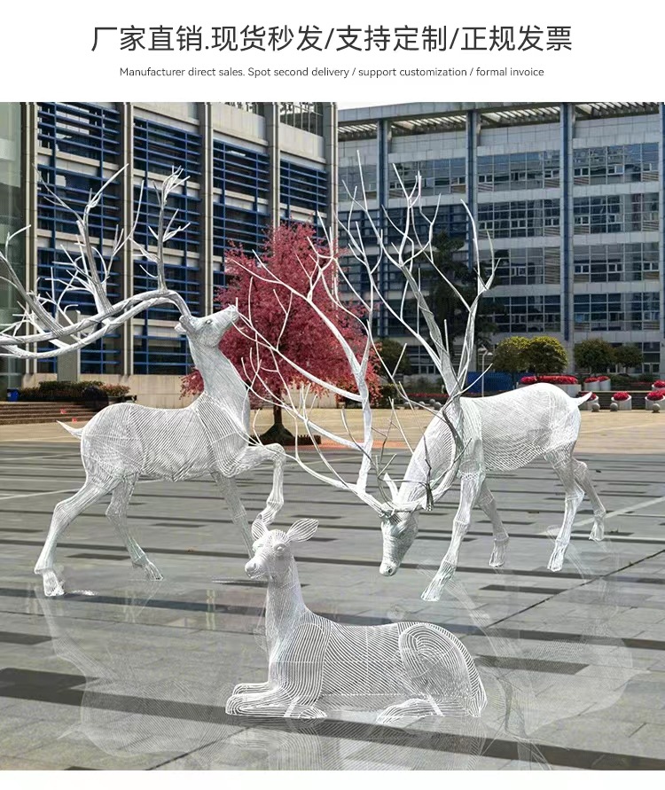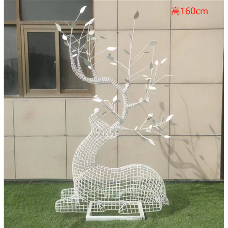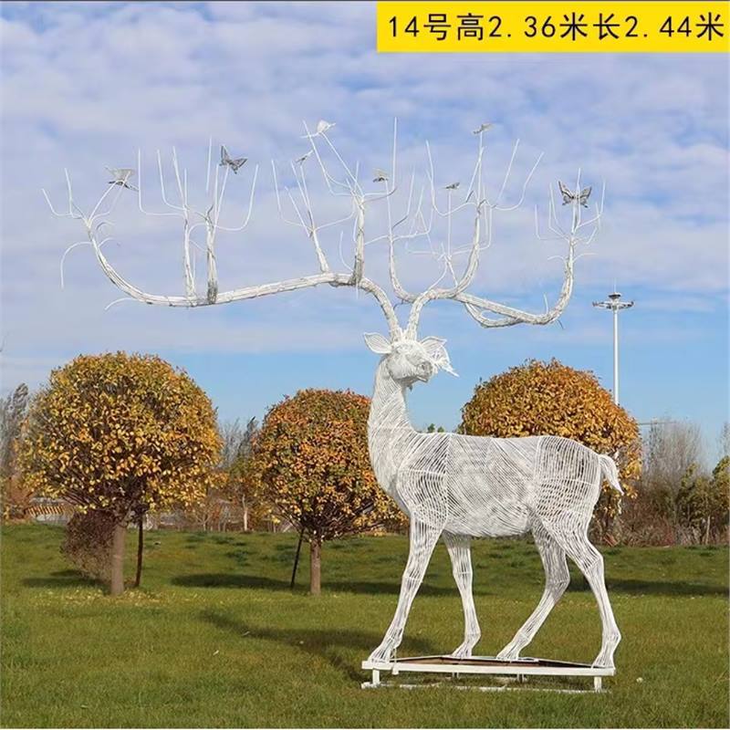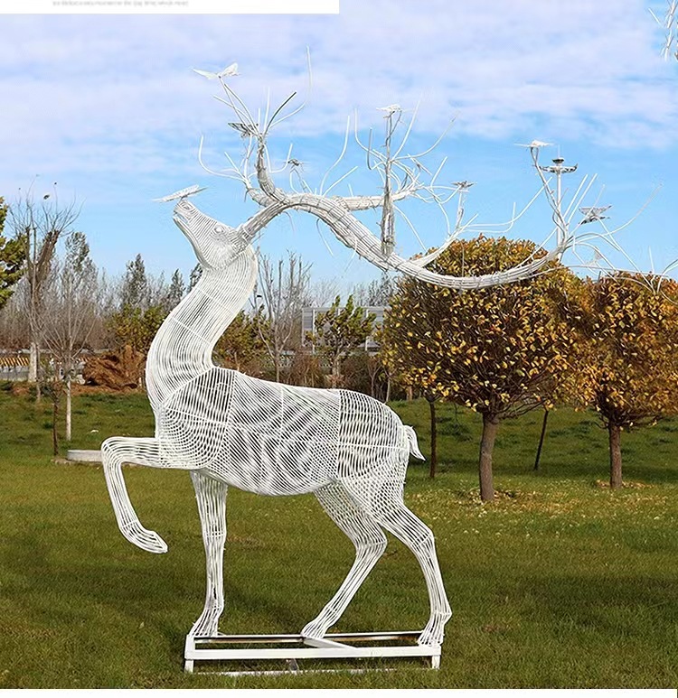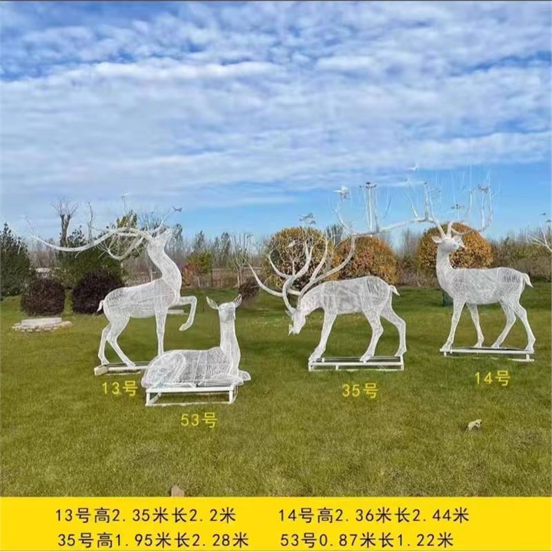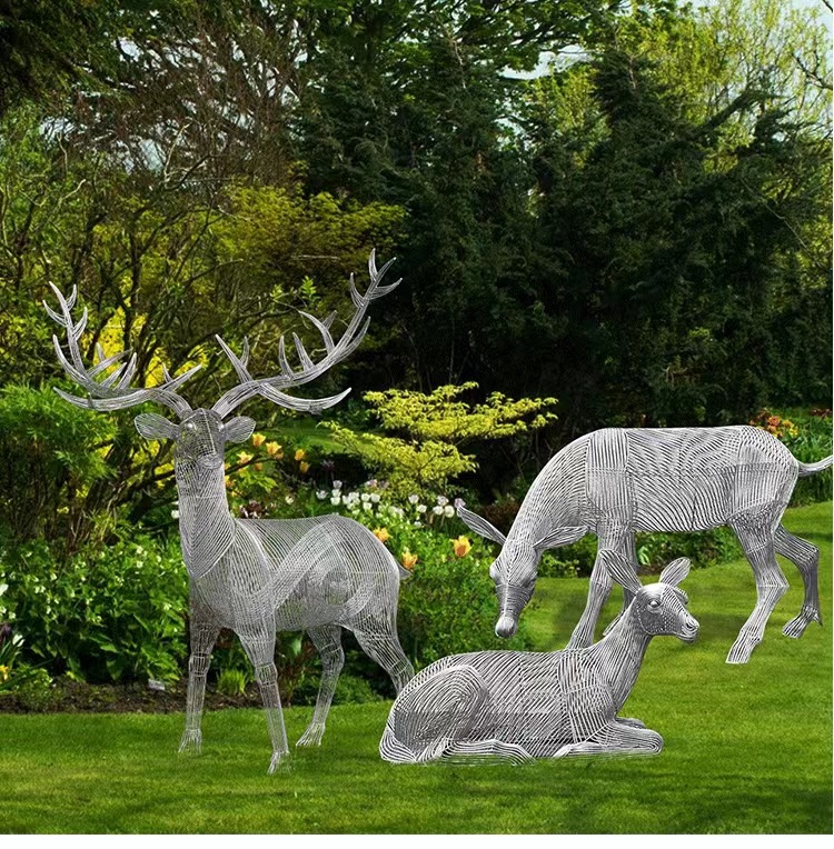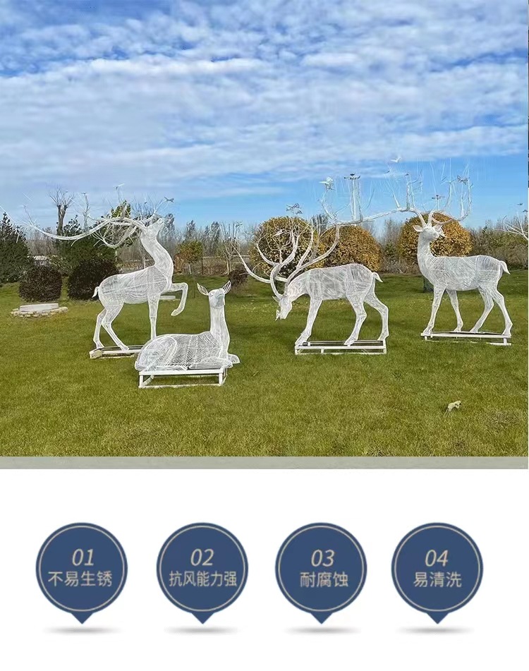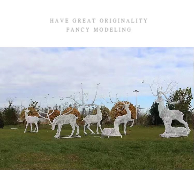 스테인레스 스틸 중공 사슴 조각 정원 풍경 빛나는 동물 장식품 야외 커뮤니티 잔디 조경 장식