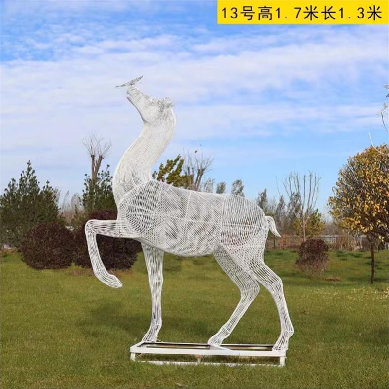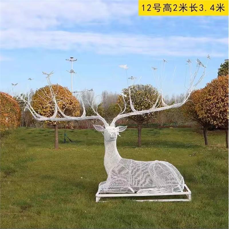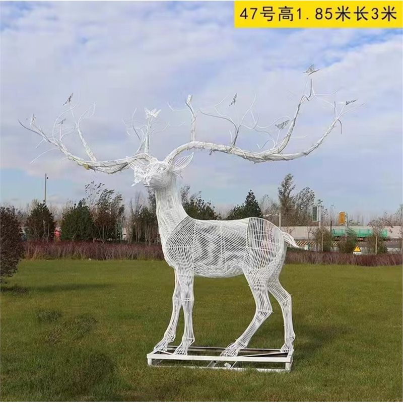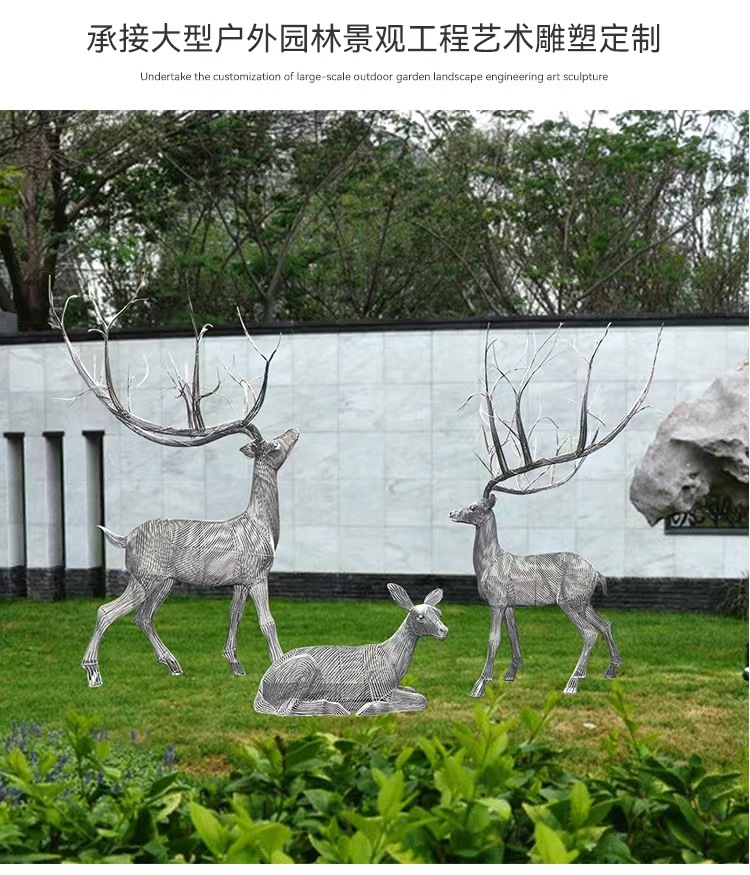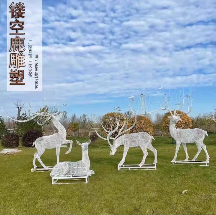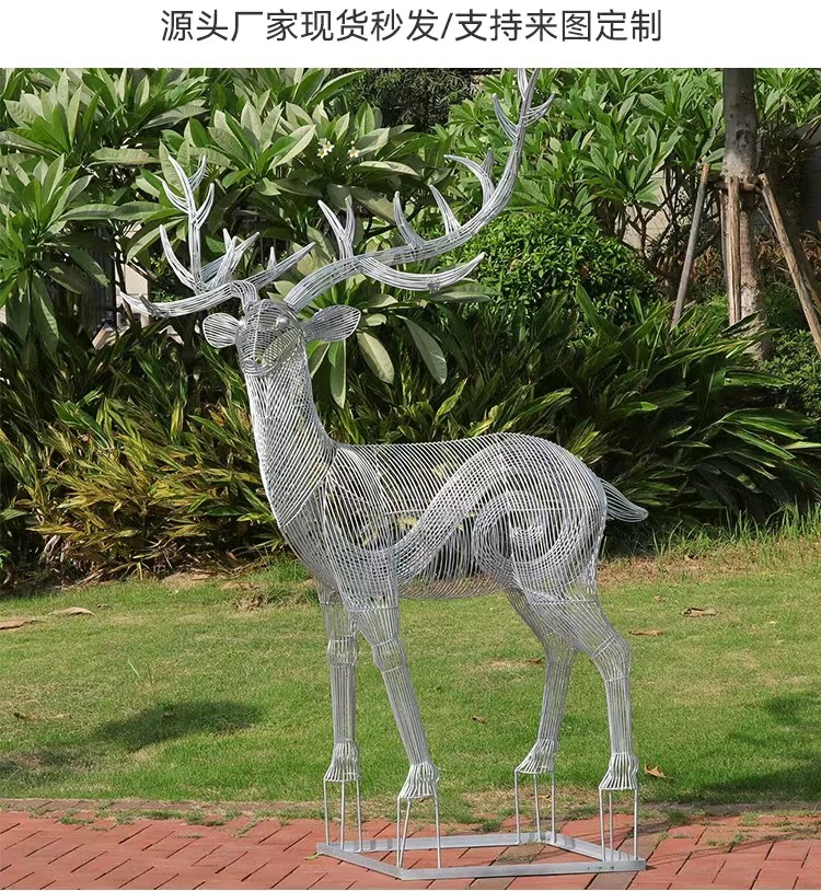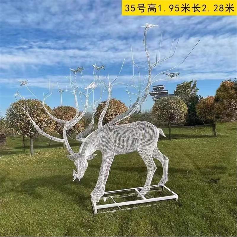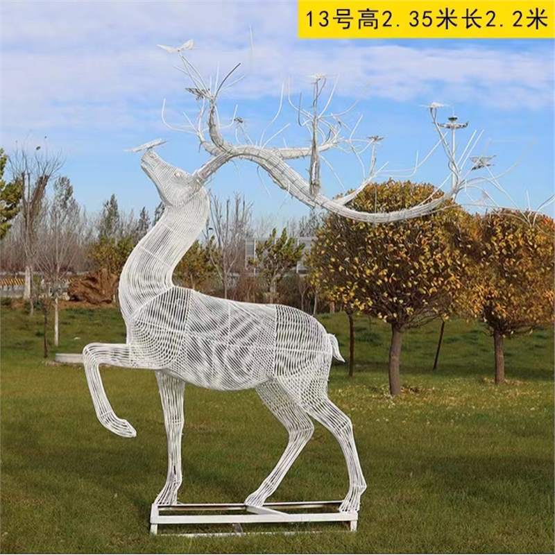 스테인레스 스틸 중공 사슴 조각 정원 풍경 빛나는 동물 장식품 야외 커뮤니티 잔디 조경 장식