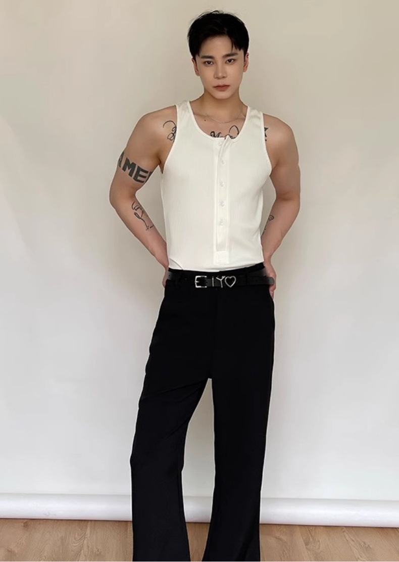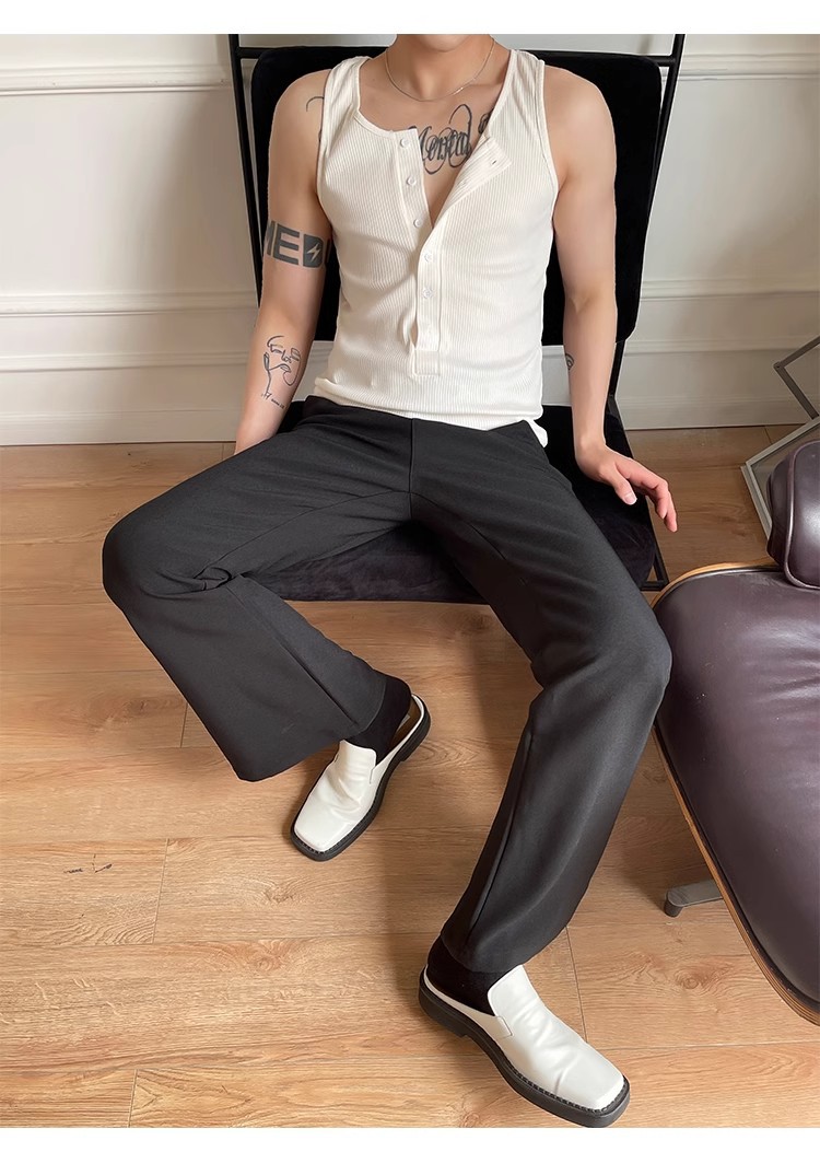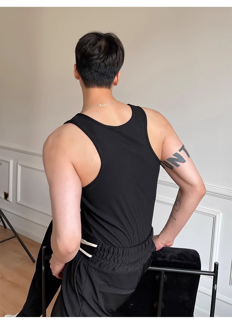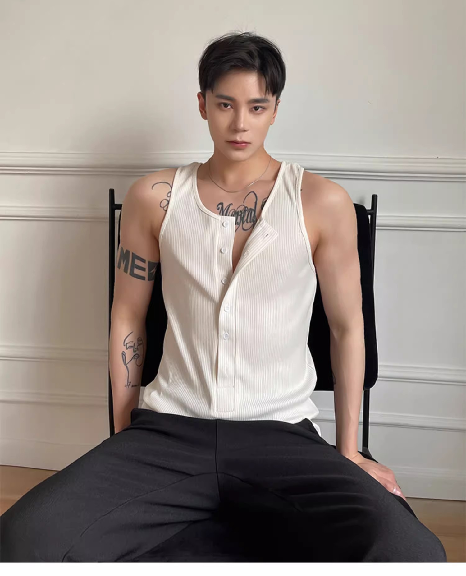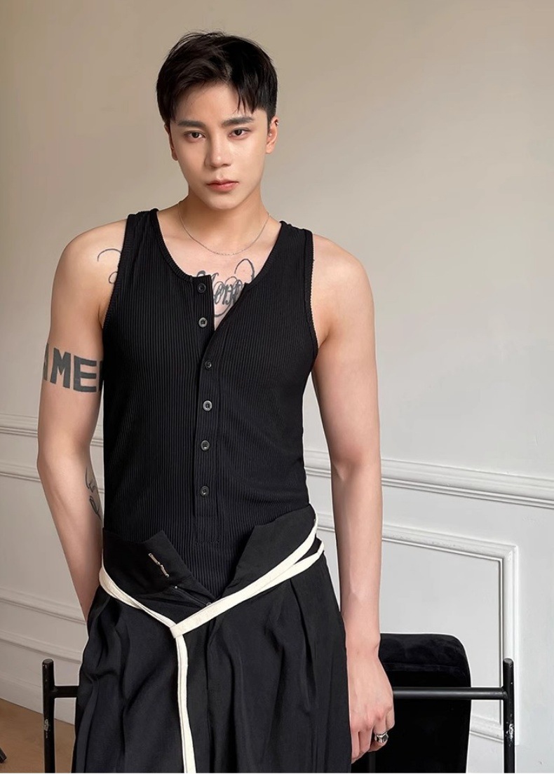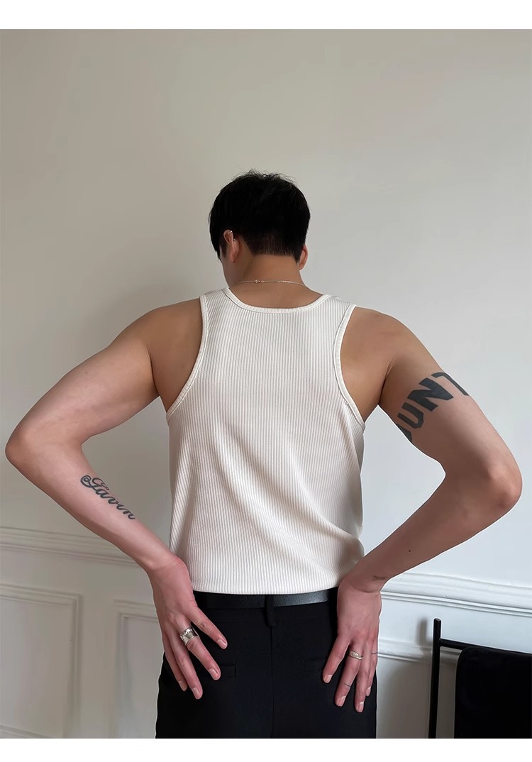 여름 맞춤형 남성 타이트 조끼 한국 버튼 디자인 민소매 남성 조끼 솔리드 컬러 니트 스웨트 조끼 통기성스토어 가기