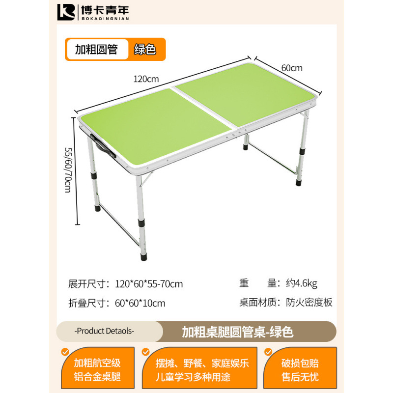 • [업그레이드 된 알루미늄 합금 사각 튜브] 120*60cm 녹색 + 알루미늄 의자 2개