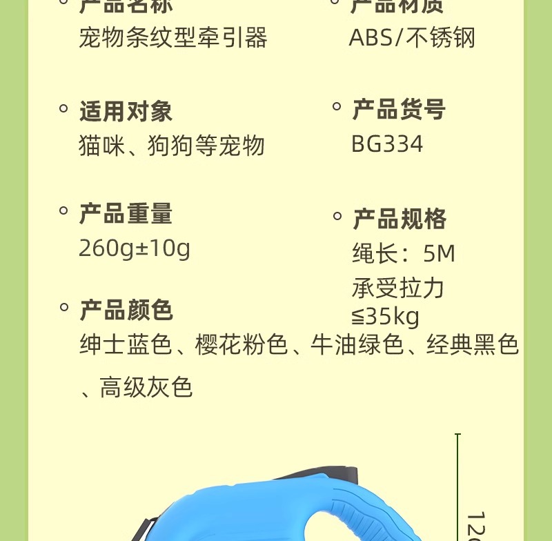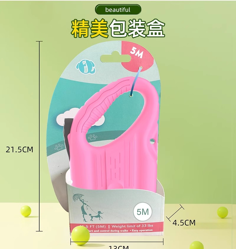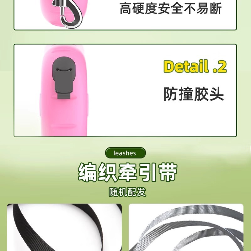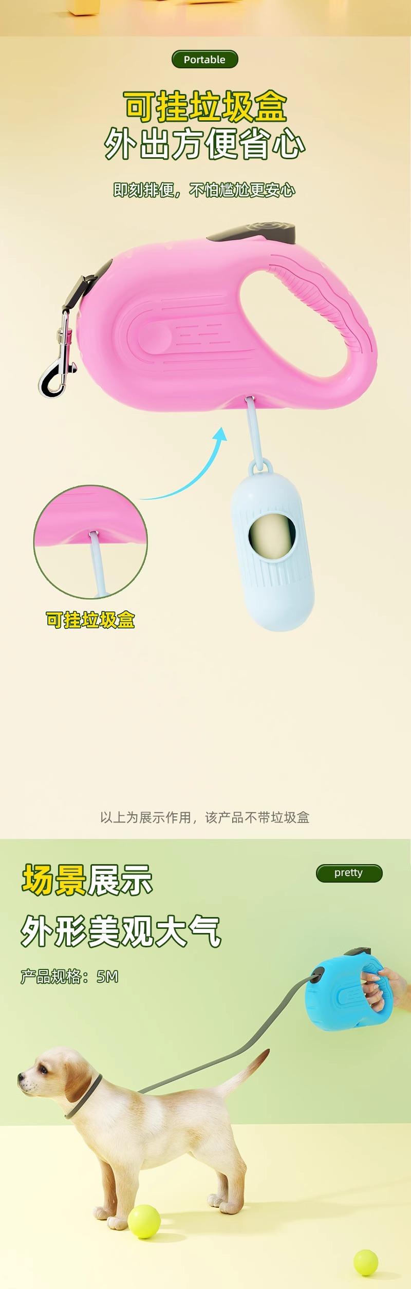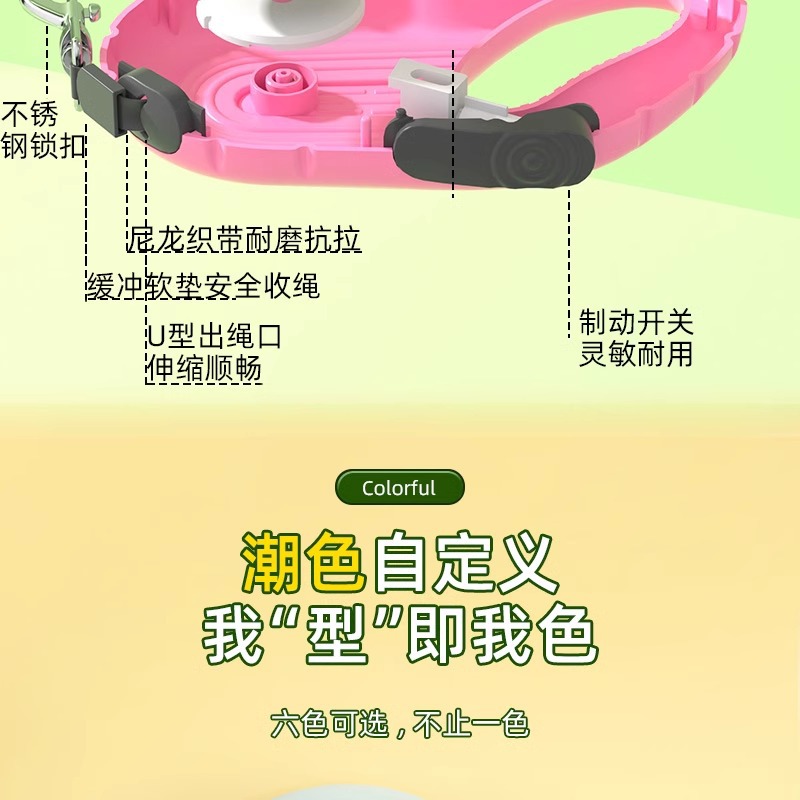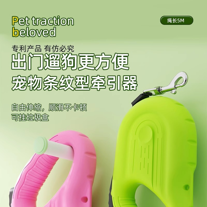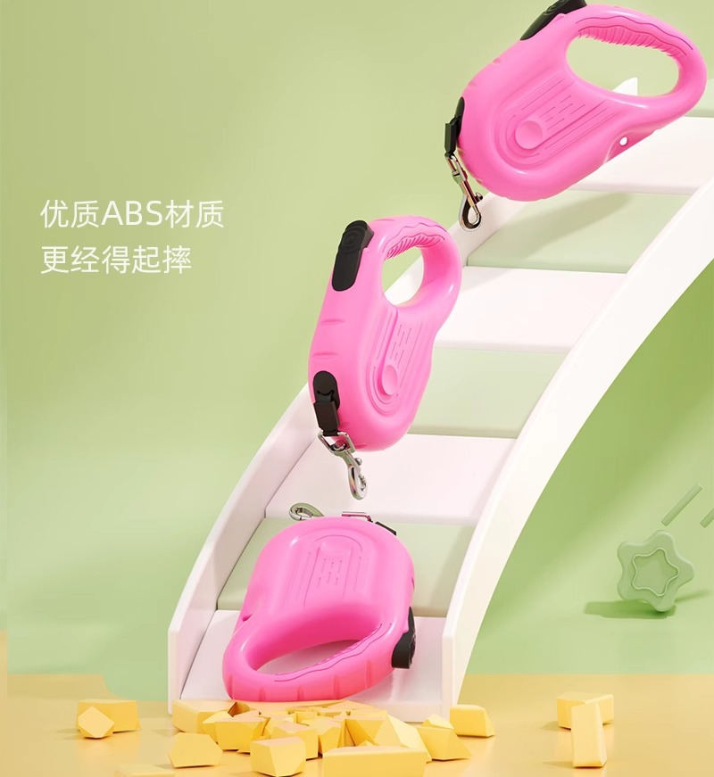 宠物牵引器自动伸缩狗狗牵引绳中小型犬马卡龙色条纹型牵引带狗绳