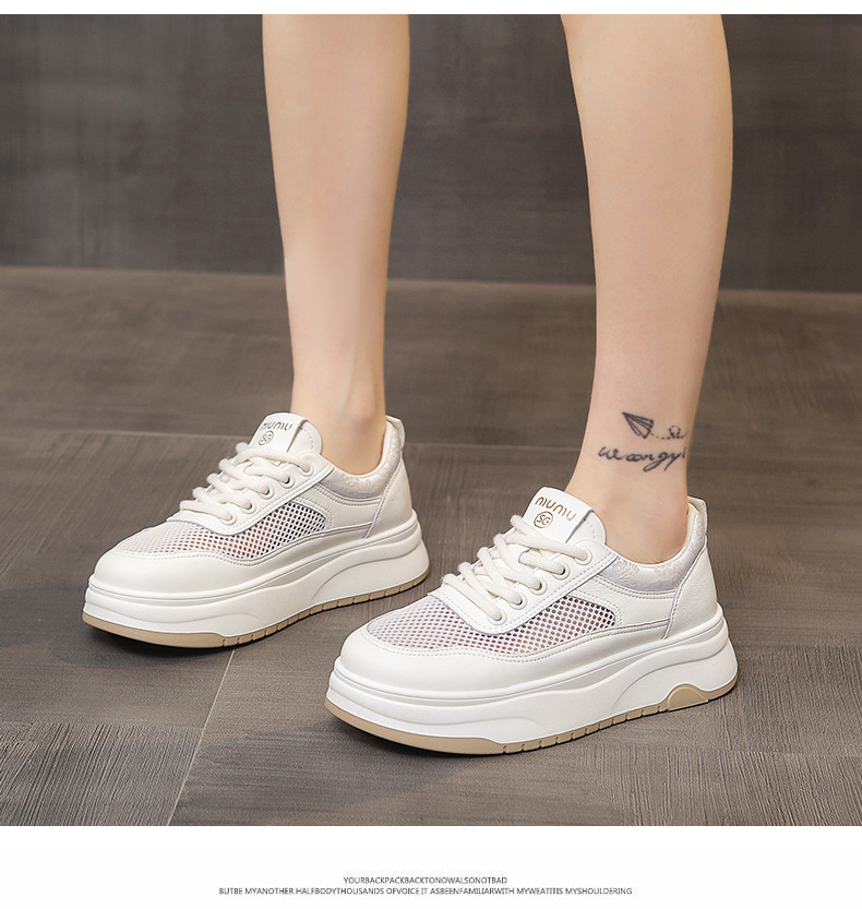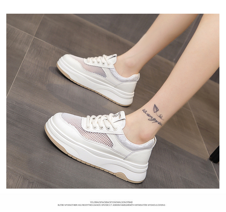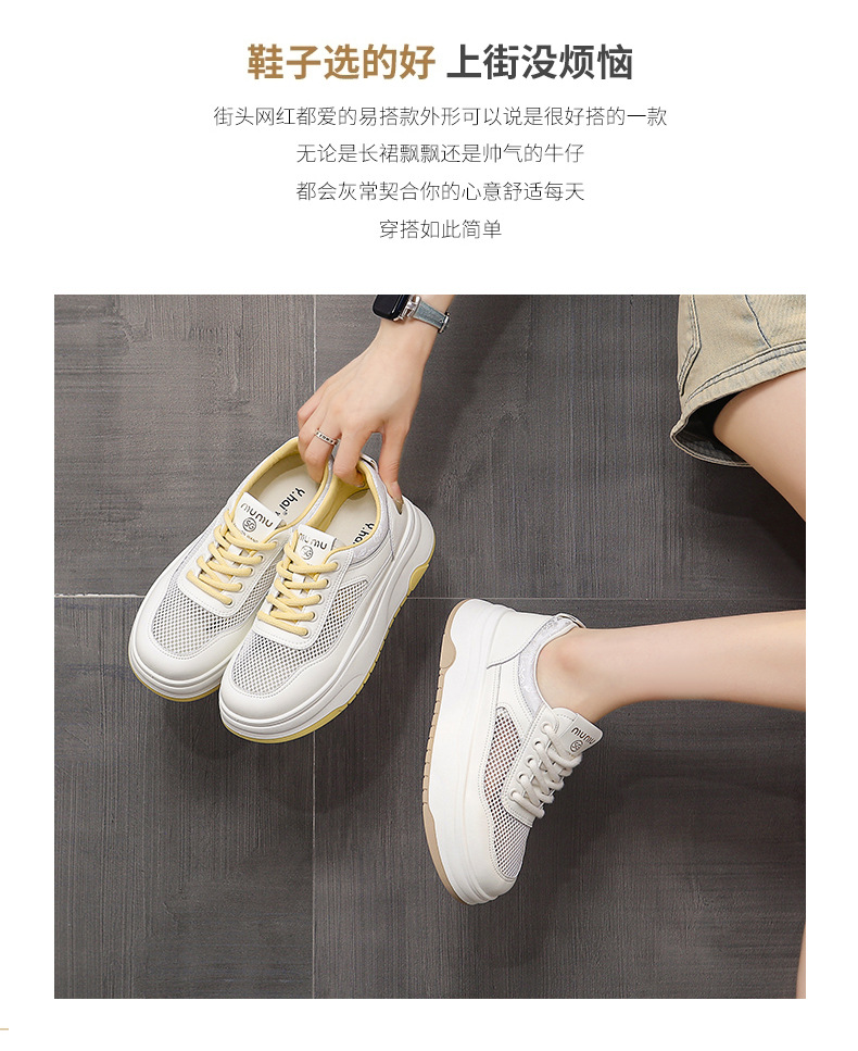 여름 여성을 위한 인기 있는 두꺼운 밑창 흰색 신발 새로운 한국식 중공 메쉬 통기성 경량 다용도 캐주얼 운동화