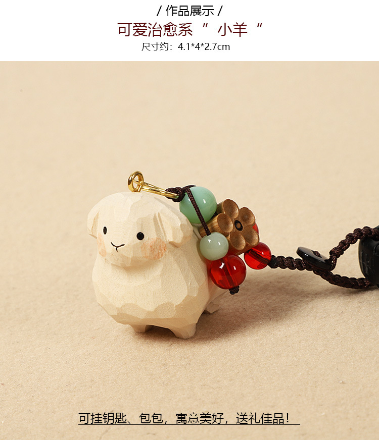 창조적 인 수제 나무 조각 어린 양 자동차 키 체인 펜던트 가방 펜던트 절묘한 귀여운 교수형 작은 선물 장식품