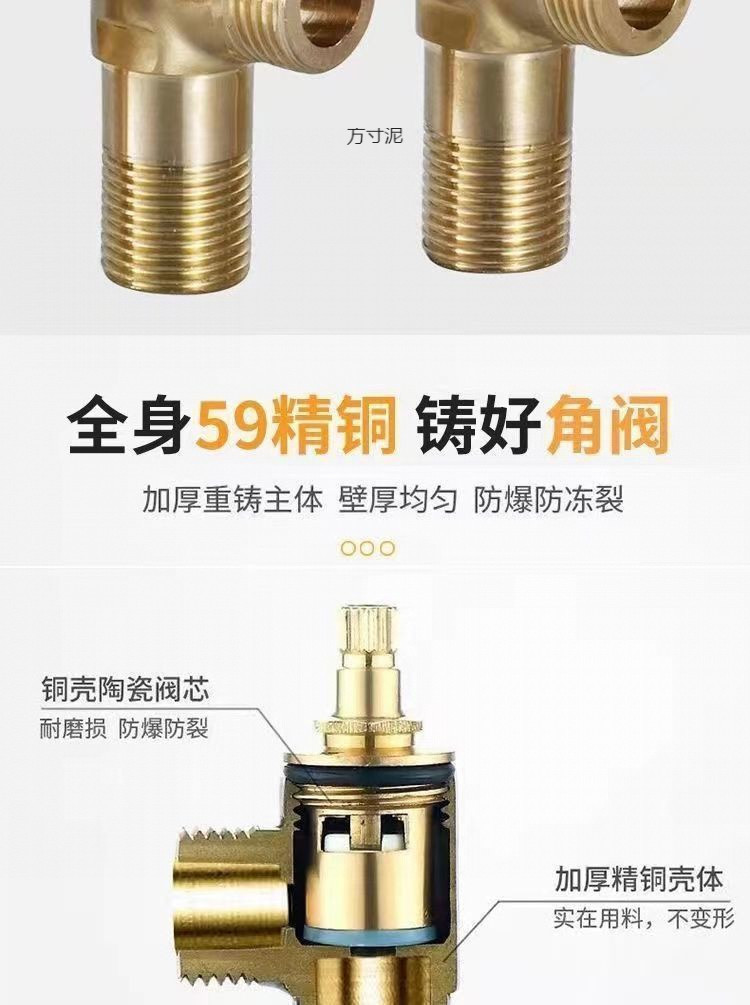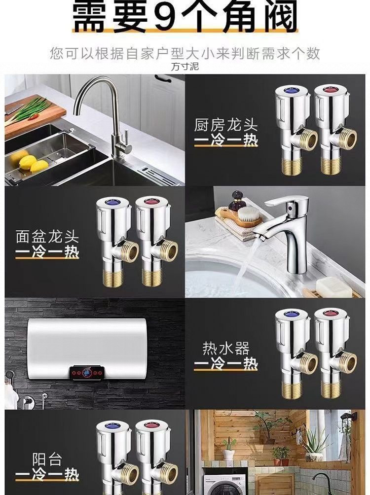 가정용 냉온수용 두꺼운 삼각형 구리, 온수기 1개, 변기 2개, 304 스테인레스 스틸 스위치 워터 밸브 공장스토어 가기