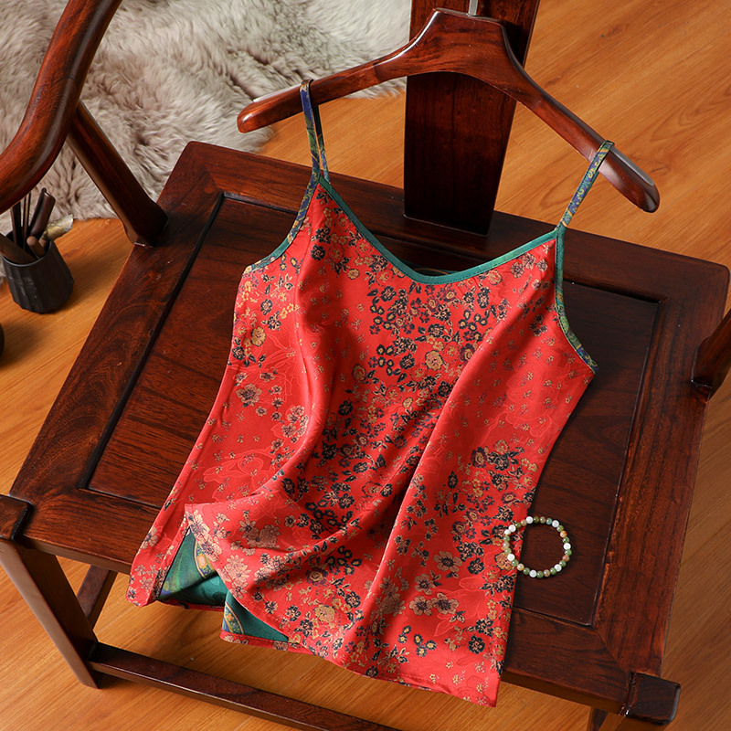 새로운 패션 국가 스타일 스트랩 새틴 작은 조끼 느슨한 슬림 스트랩 조끼 도매로 새로운 중국 세트