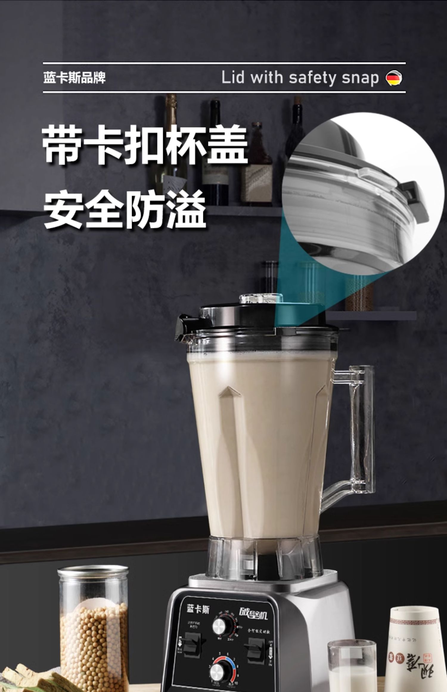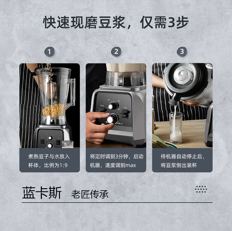 무료 배송 블루 카스 두유 기계 상업용 아침 식사 가게 슬러지 프리 필터링 대용량 그라인더 타이머 고출력 파괴 기능 포함스토어 가기
