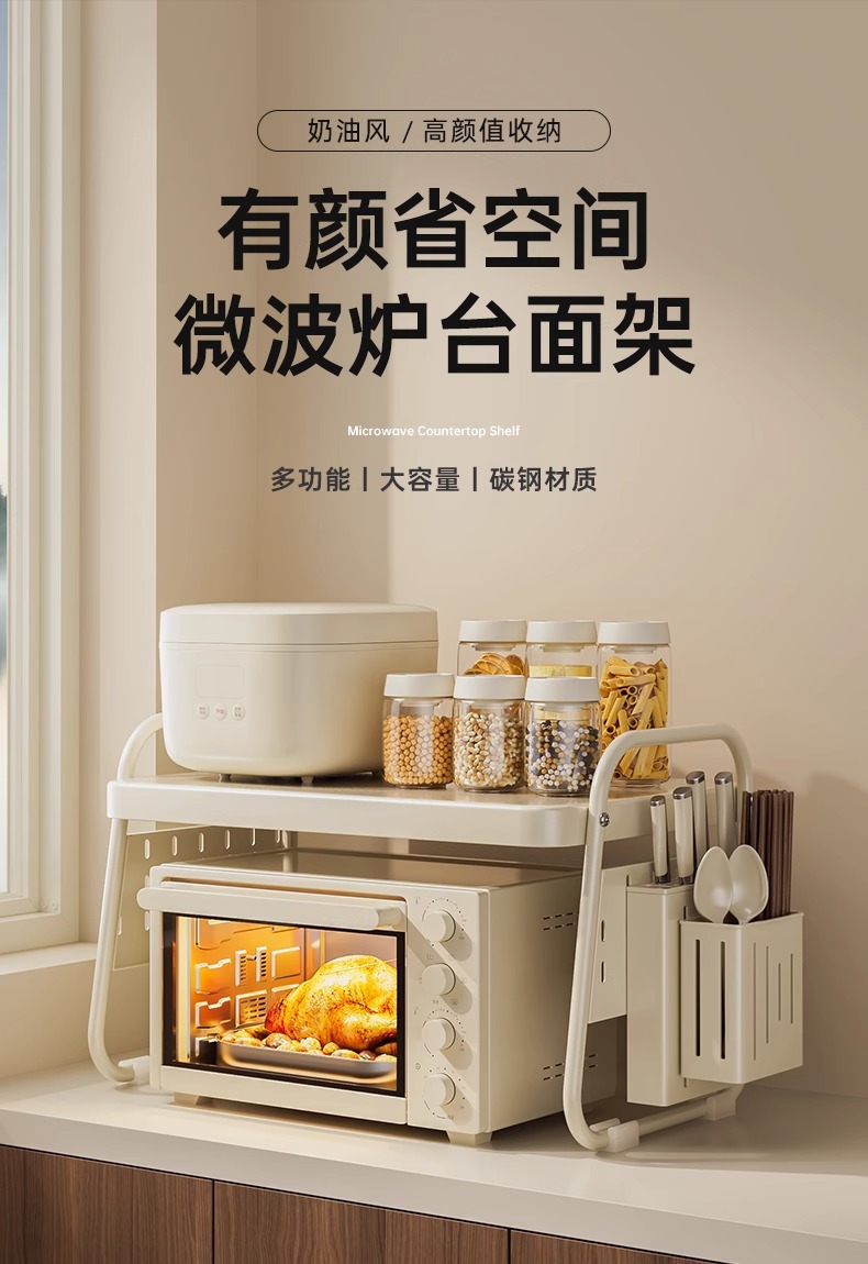 전자 레인지 선반 보관함 조리대 오븐 더블 레이어 다기능 데스크탑 주방 밥솥 보관함 가정용스토어 가기