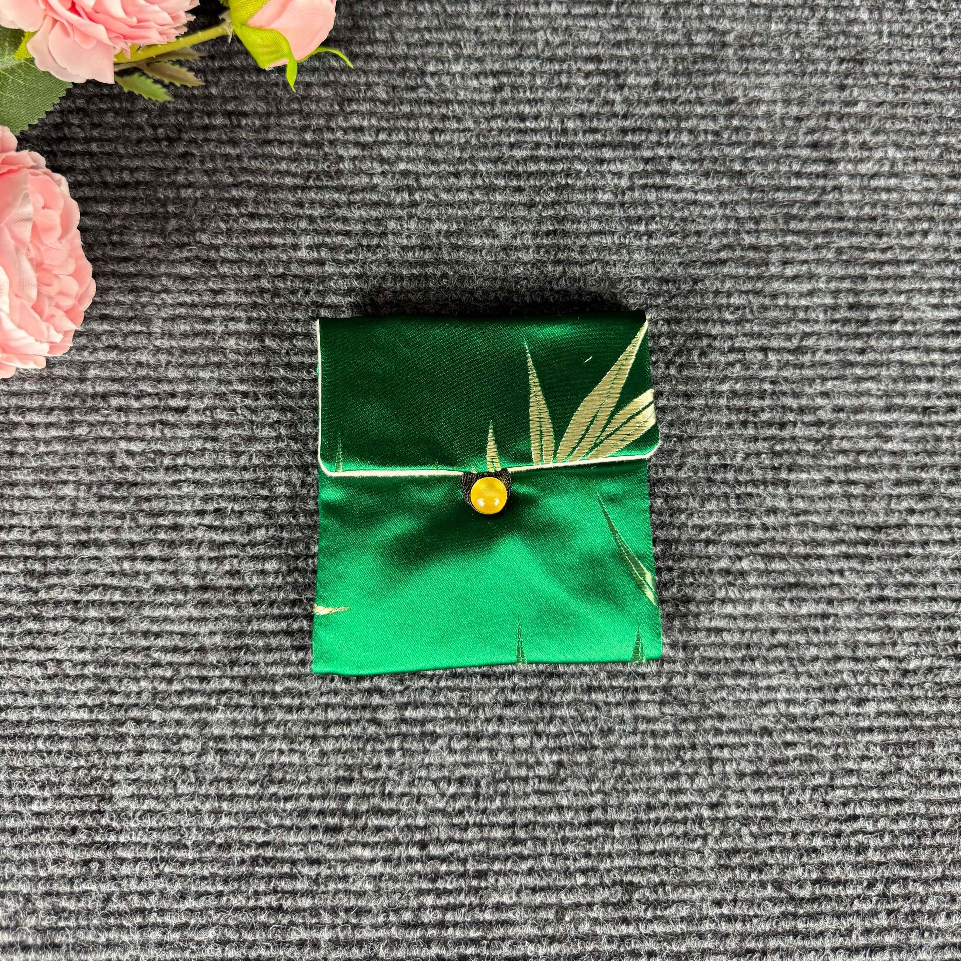• [녹색 대나무 잎] 플립탑 보석 보관 가방, 폭 9cm, 높이 10cm