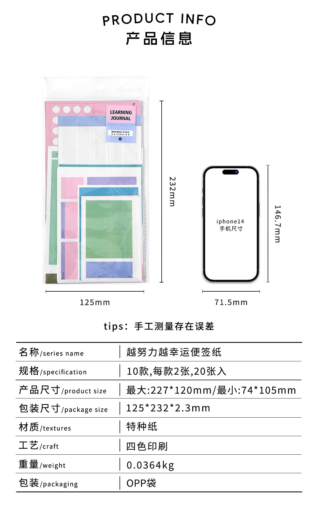 인페렐. 나 기능적 학습 노트 종이, 당신이 열심히 일할수록, 운이 좋은 시리즈 M5 느슨한 잎 A7 내부 페이지 자료
