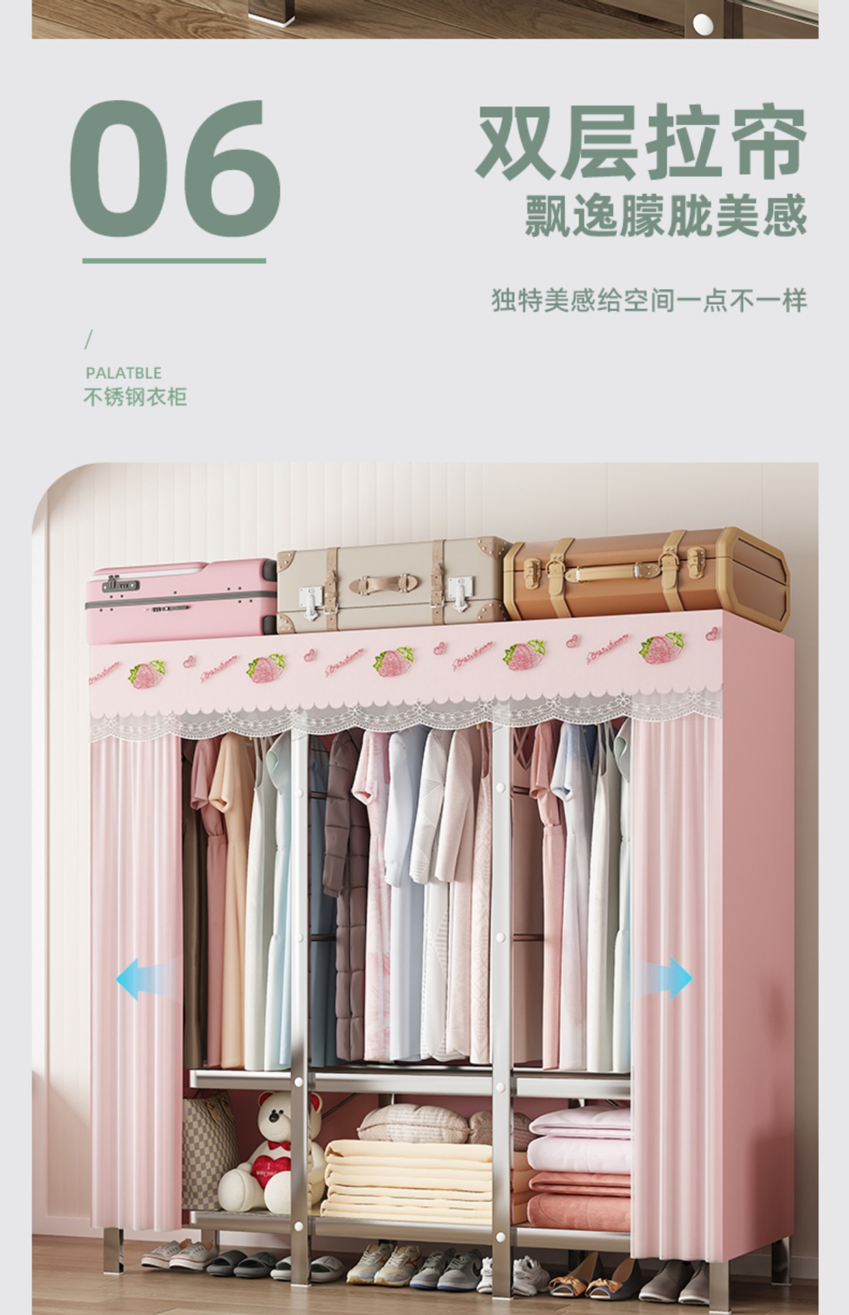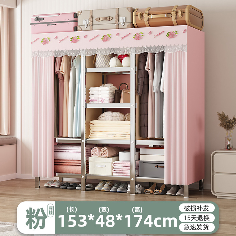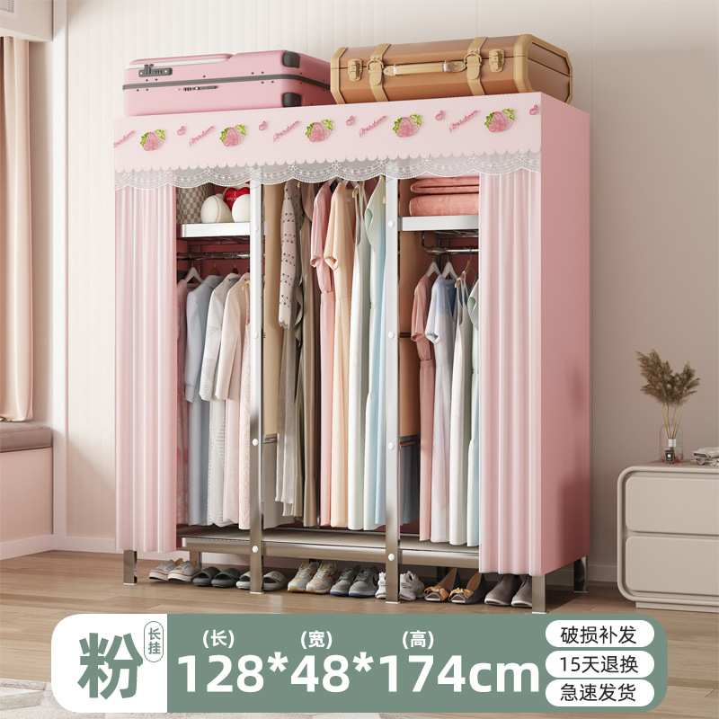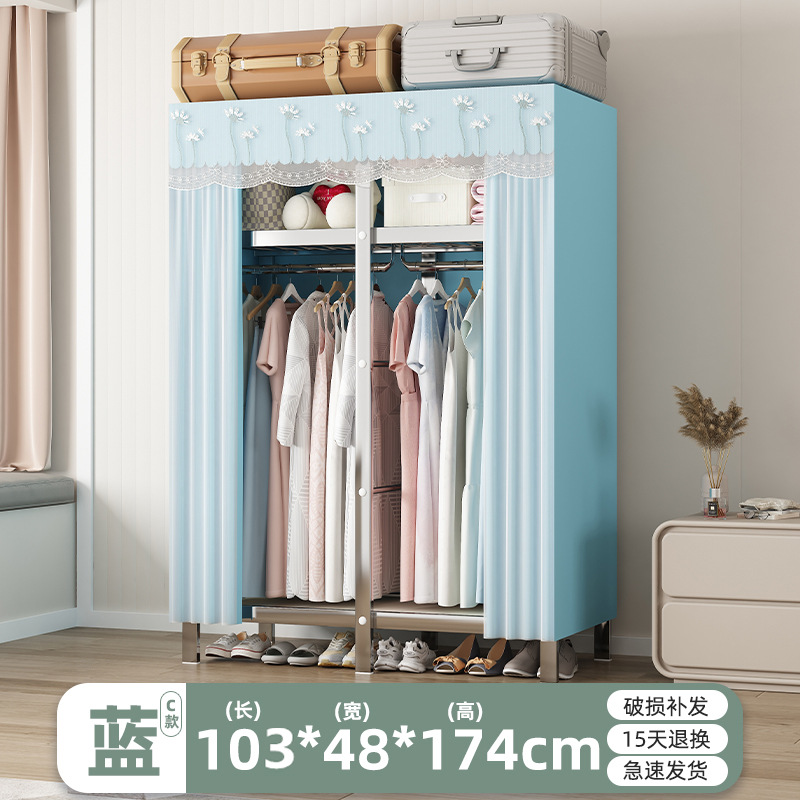 간단한 옷장 거즈 커튼 천 옷장 스테인레스 스틸 프레임 강력하고 내구성이 뛰어난 조립 옷장 임대실 접이식 거즈 p^스토어 가기