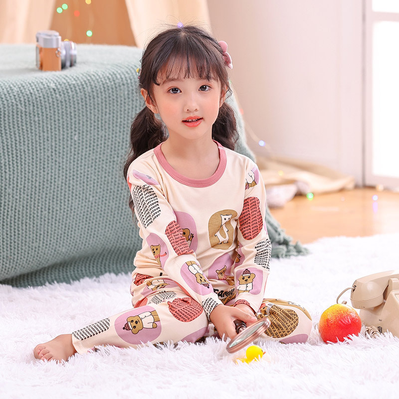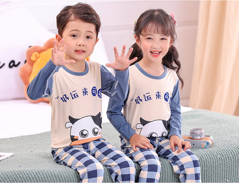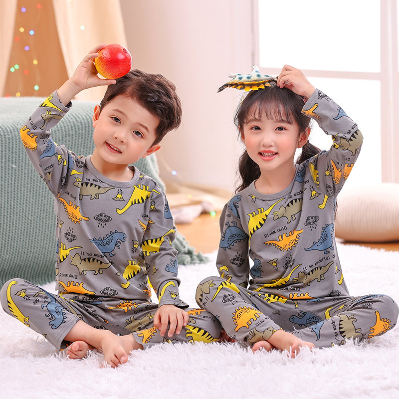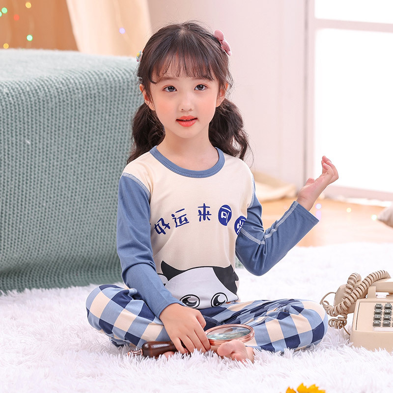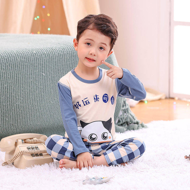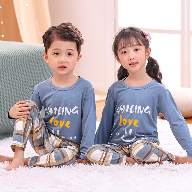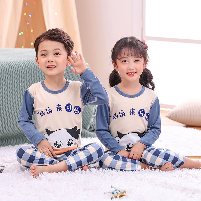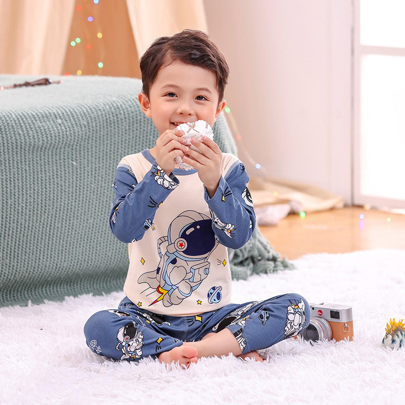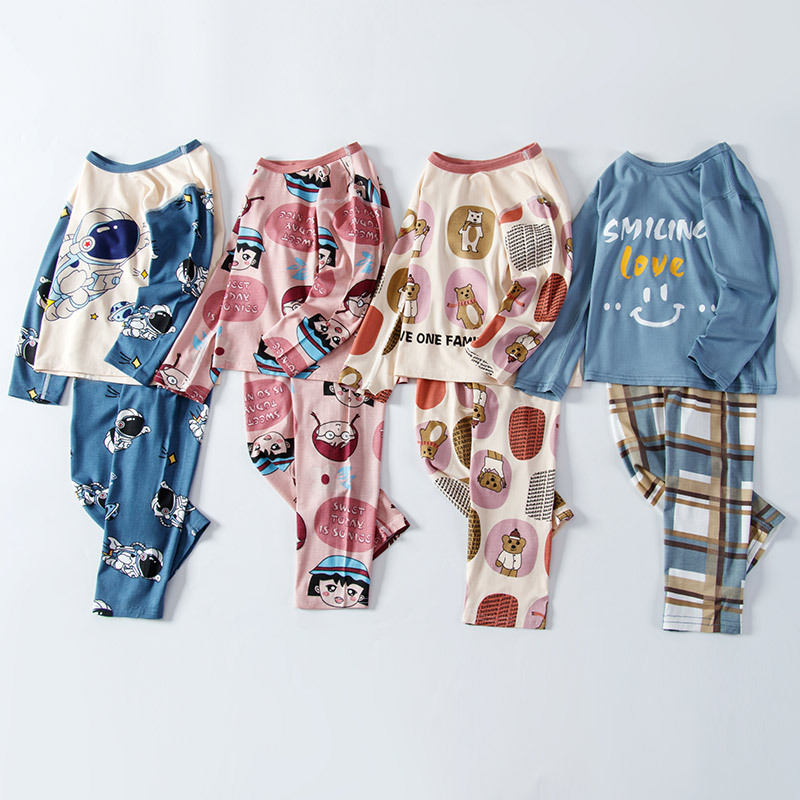 봄과 여름 어린이 긴팔 잠옷 얇은 모달 소녀 만화 소년 에어컨 의류 중형 및 대형 아동복 세트스토어 가기