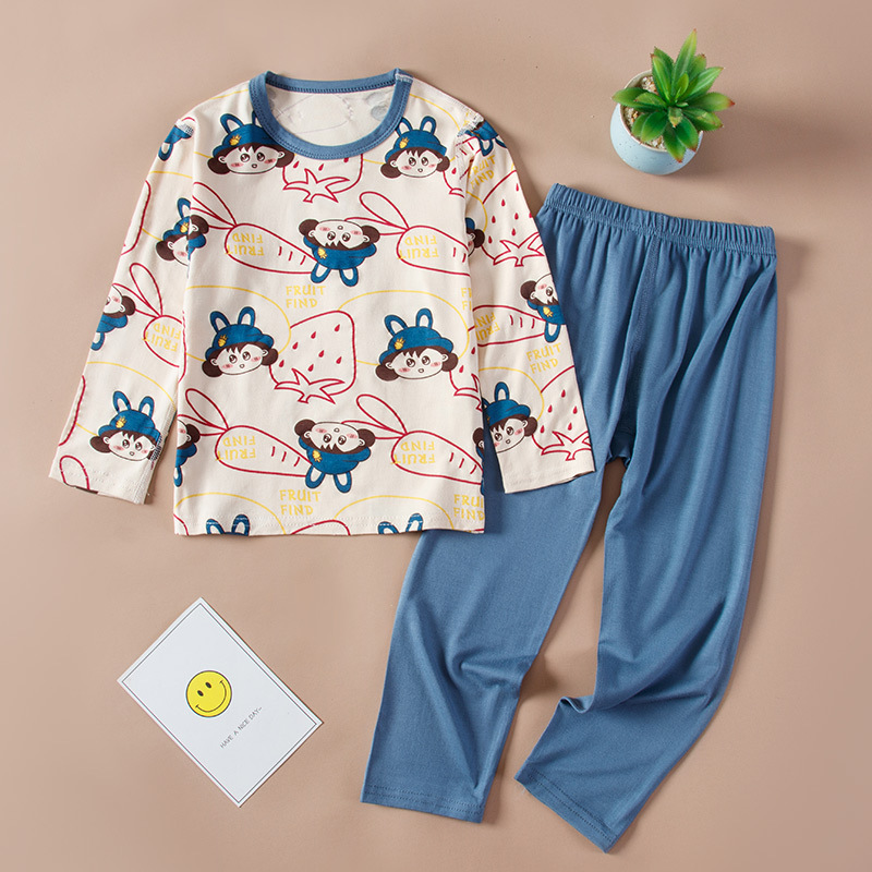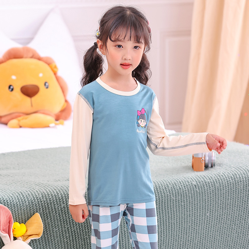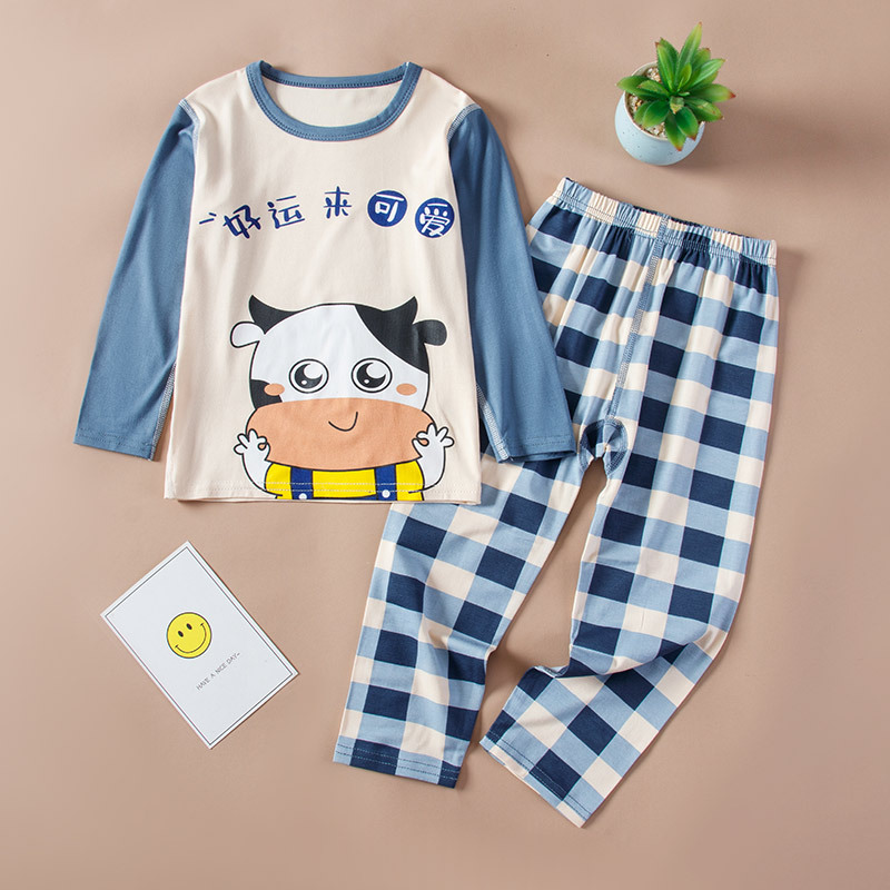 봄과 여름 어린이 긴팔 잠옷 얇은 모달 소녀 만화 소년 에어컨 의류 중형 및 대형 아동복 세트