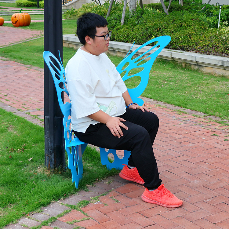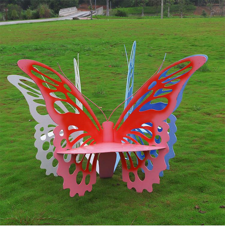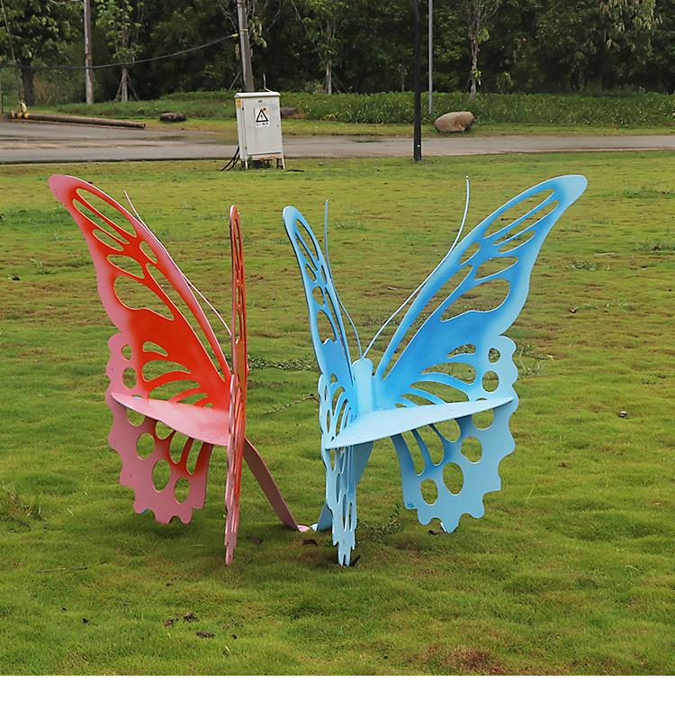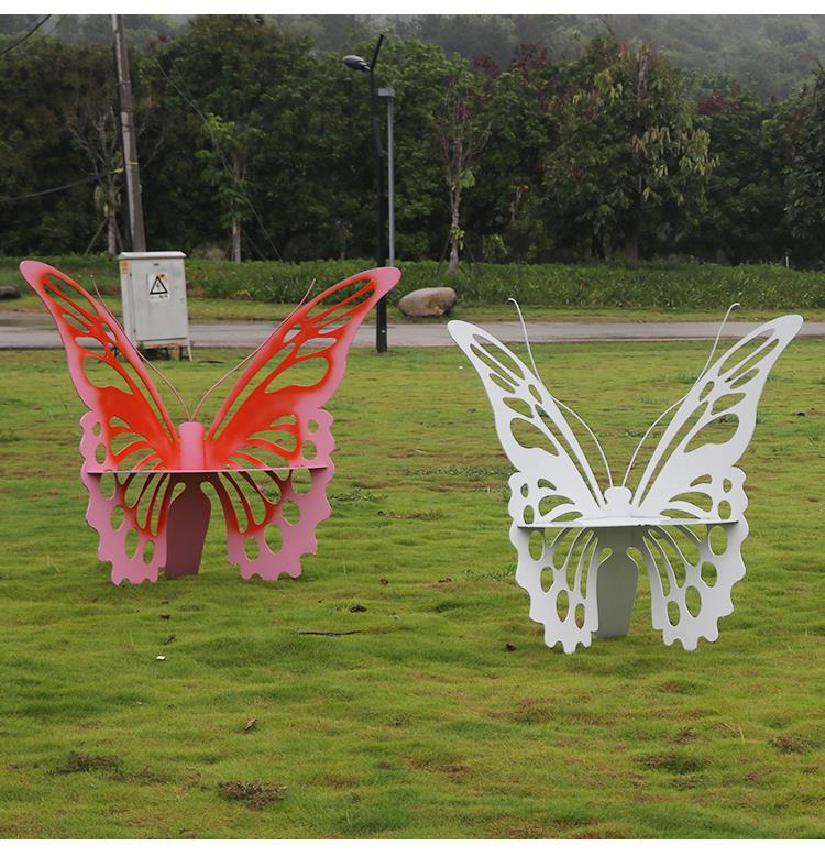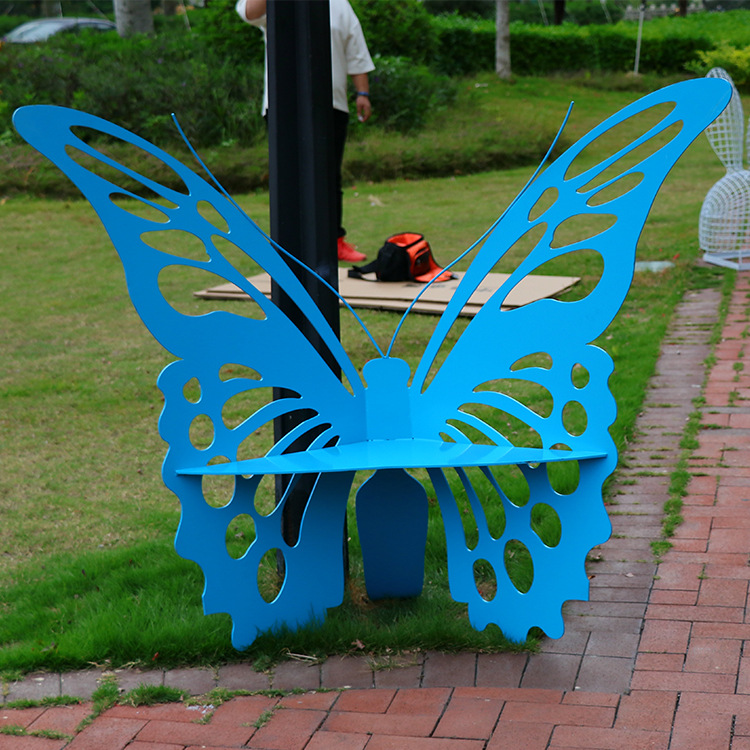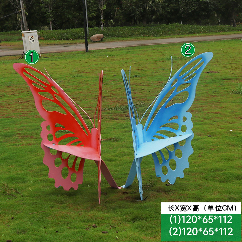 스테인레스 스틸 중공 나비 의자 좌석 조각 판매 부서 커뮤니티 쇼핑몰 정원 풍경 잔디 장식 장식품스토어 가기