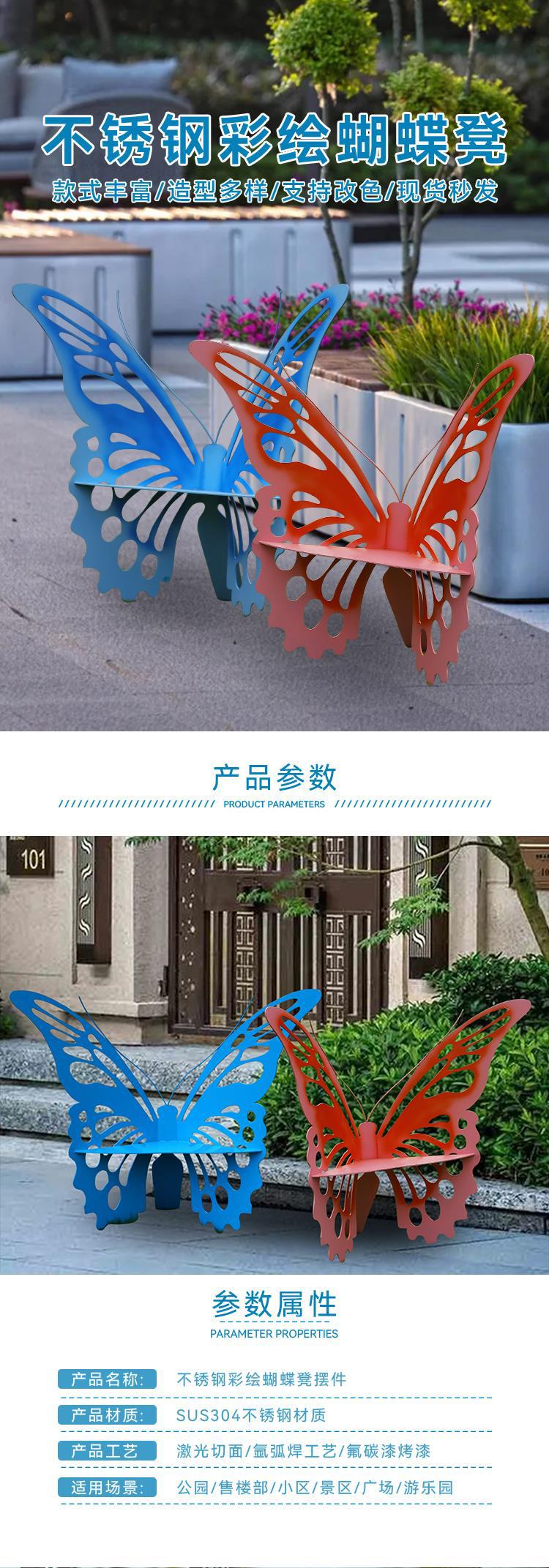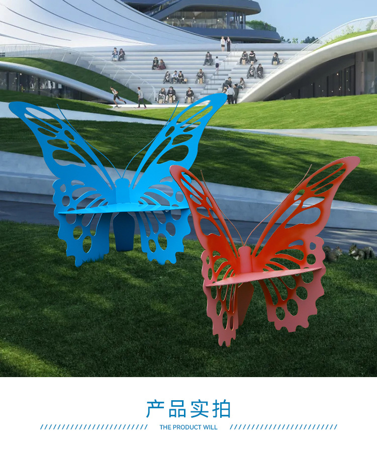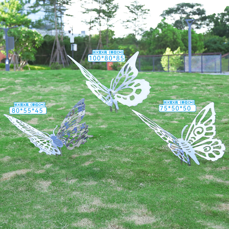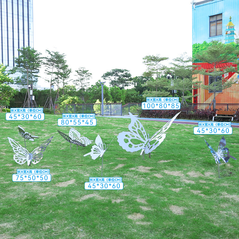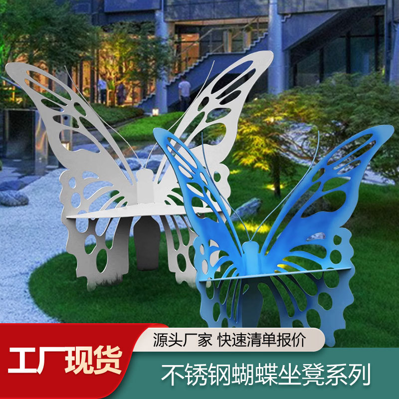 스테인레스 스틸 중공 나비 의자 좌석 조각 판매 부서 커뮤니티 쇼핑몰 정원 풍경 잔디 장식 장식품스토어 가기
